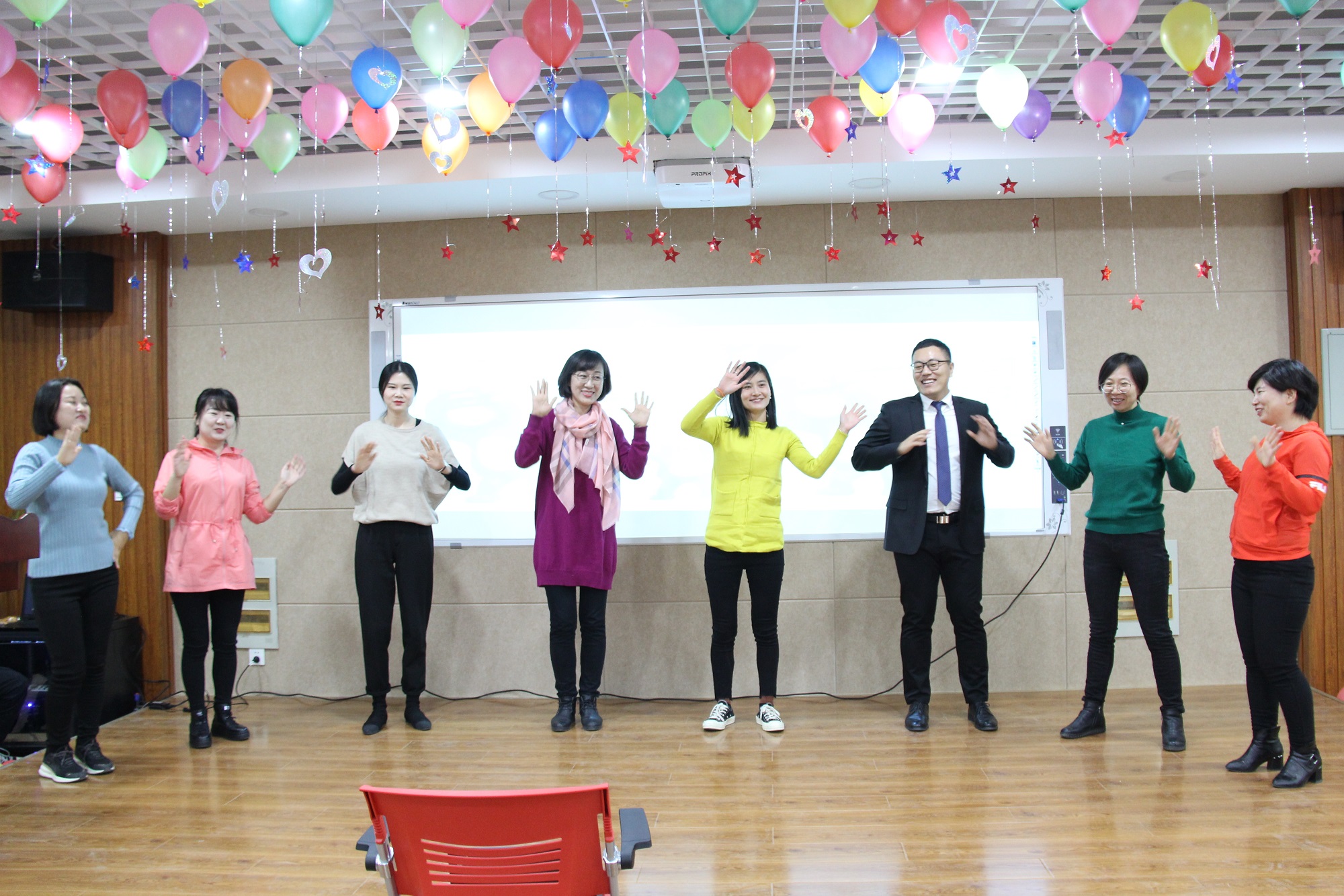 beat365官方网站党委书记王仁高向全体教师表达了新年祝福,希望外院在新的一年再接再厉,再创佳绩。联欢会上,我院教师精心准备的节目时尚高雅,精彩纷呈。小合唱《雪绒花》、京剧《梨花颂》、韩国歌曲串烧《小蝌蚪、三只小熊》、舞蹈《半糖主义》、小合唱《万水千山总是情》、歌曲《听海》、合唱歌曲《明天会更好》等赢得阵阵掌声。期间还有老师和小朋友们的互动,外院教师的下一代也充分展现了他们的多才多艺:王时宙小朋友带来的舞蹈《茉莉花》、徐玉凤老师和她的女儿为我们带来的诗朗诵《我们为什么活着》等。活动期间穿插的互动抽奖环节,使联欢会现场气氛热烈,激情互动,欢呼声笑声此起彼伏。