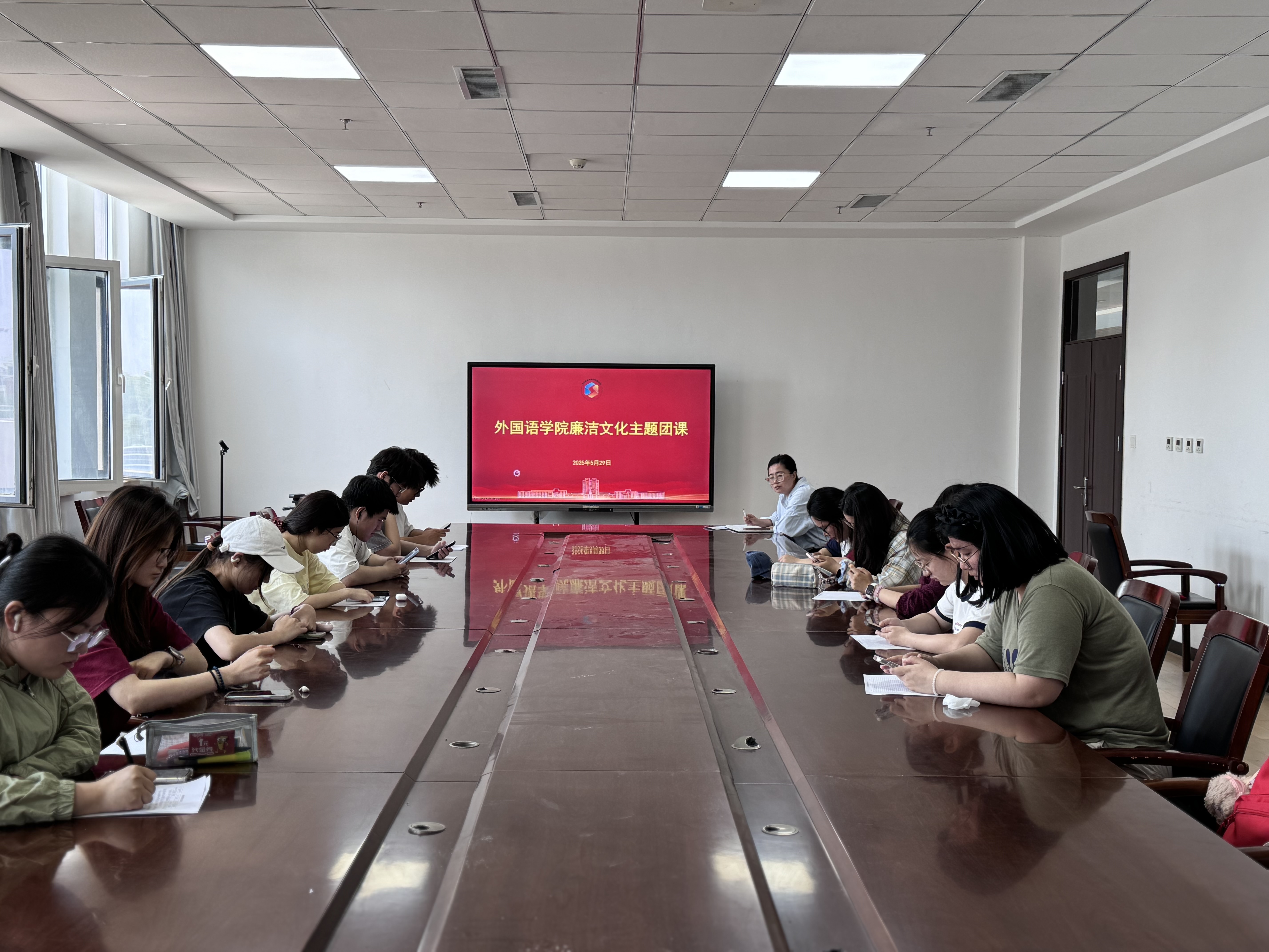 5月29日,beat365官方网站团委书记线郁在平度校区大学生活动中心201会议室讲授廉洁文化主题团课,辅导员仇文峰、邹晓婷及全体学生骨干线上线下参加。