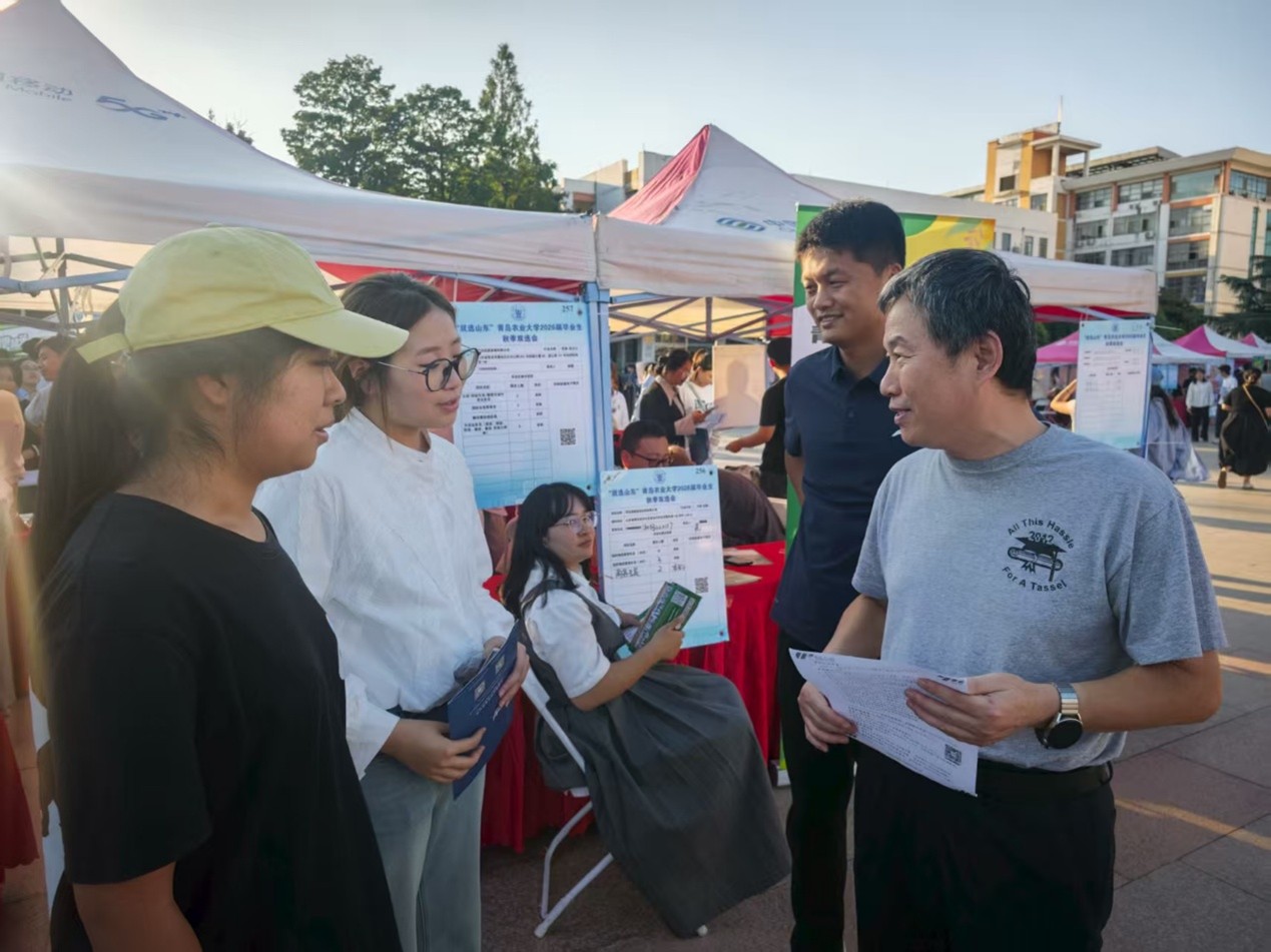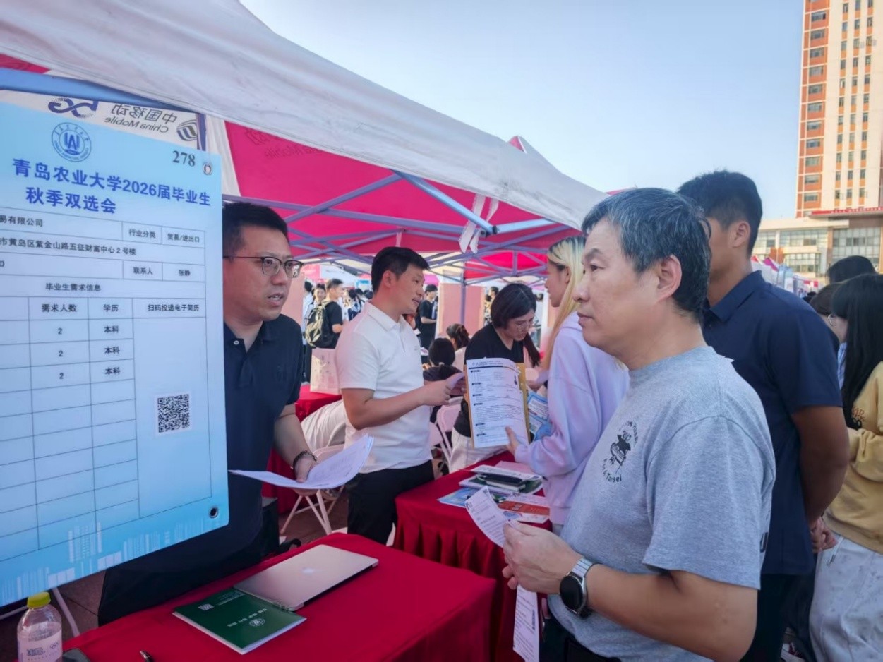 为畅通毕业生与用人单位沟通渠道,实现人才供需精准对接,全力助推2026届毕业生充分高质量就业,9月25日,“就选山东”山东省高校毕业生省级集中招聘活动现代高效农业产业专场暨beat365官方网站2026届毕业生秋季双选会在虹子广场成功举办。beat365官方网站党委书记王效仿,党委副书记、副院长盛金玉和辅导员王洋洋深入双选会现场开展实地走访调研。
