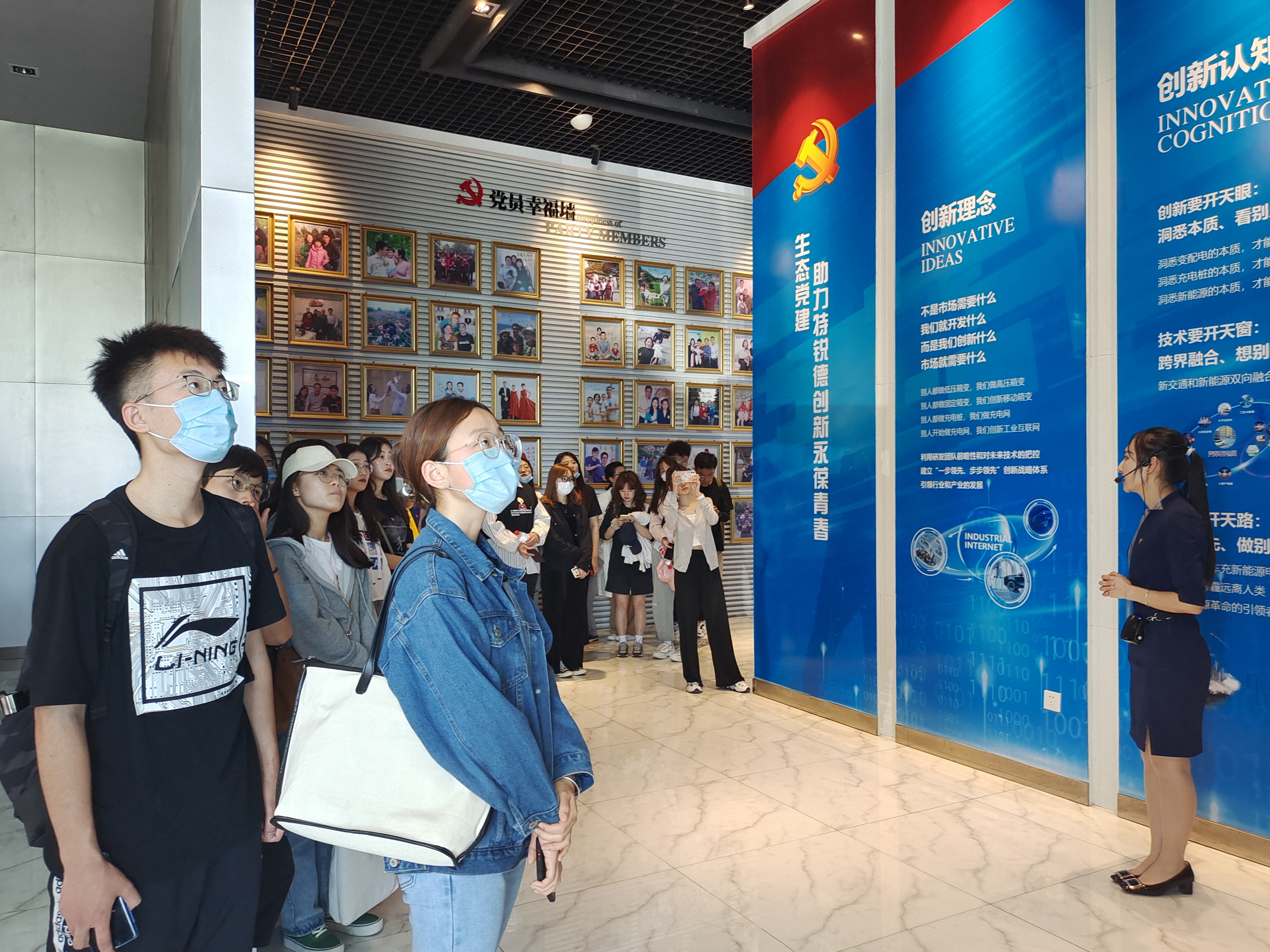 为进一步增强学生党员的党性修养,增强青年大学生的时代使命感和社会责任感,积极发挥学生党员的先锋模范作用,5月28日下午,在学院辅导员线郁、李虹俐、王洋洋的带领下,beat365官方网站beat365官方网站组织部分学生党员和入党积极分子参观青岛特锐德电气股份有限公司的“生态党建”展厅和中国新能源生态科技馆。