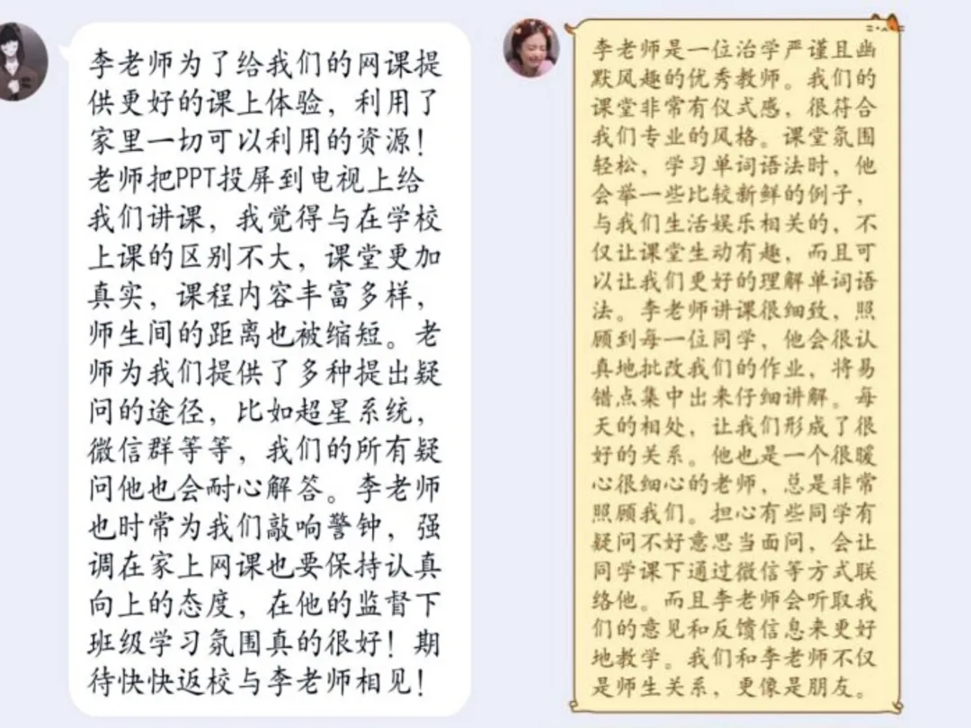 爱的礼物 英语专业一名大三的学生,因为家里没法安装网线,只能用手机上课,正在担心网络卡顿导致影响上课,却在上课前收到了徐玉凤老师一份特别的礼物,当她看到快递箱里面厚厚的上课材料时,内心充满了感激和感动。这样温暖的事情,发生在党员徐玉凤身上可不只是一件,当学生有心理上的问题困扰的时候,学生第一时间想到的就是找徐老师倾诉,毕业多年的学生回到母校,最想看望的也是徐老师。同时,作为教研室主任,徐老师积极组织任课教师进行网课回顾总结,交流研讨,确保授课质量。