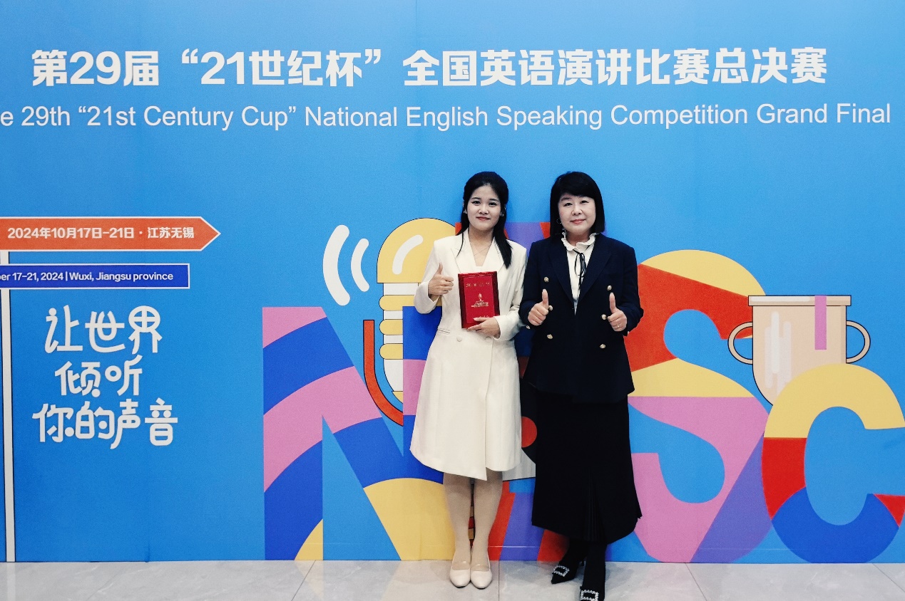 10月16日-21日,第29届中国日报社“21世纪杯”全国英语演讲比赛总决赛在江苏无锡隆重举办。来自全国20多个省市地区及香港、澳门特别行政区的246名学子参加了本次决赛。beat365beat365官方网站英语系2021级学生庄相婷在本次大赛中表现突出,获国家级二等奖。指导教师beat365官方网站英语系夏鹏铮荣获大赛优秀指导教师荣誉称号,beat365官方网站荣获优秀组织奖荣誉称号。
