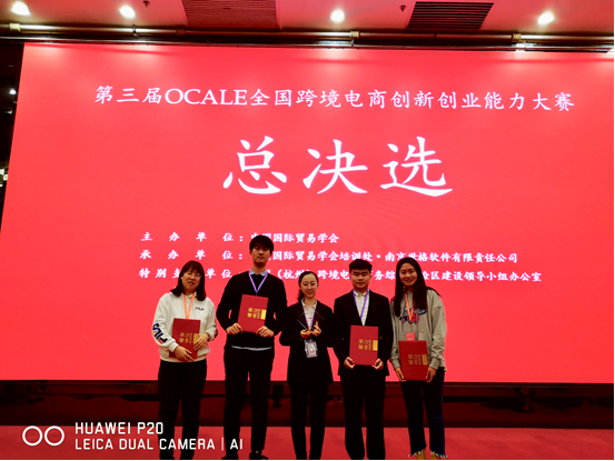 12月21日,第三届 OCALE 全国跨境电商创新创业能力大赛总决选在杭州落下帷幕。由beat365官方网站学生田忠阳、潘子文和姜绮瑶组成的beat365官方网站代表队在学院教师左燕茹和李晶的指导下,荣获跨境电商创新创业能力大赛全国总决选团队一等奖。
