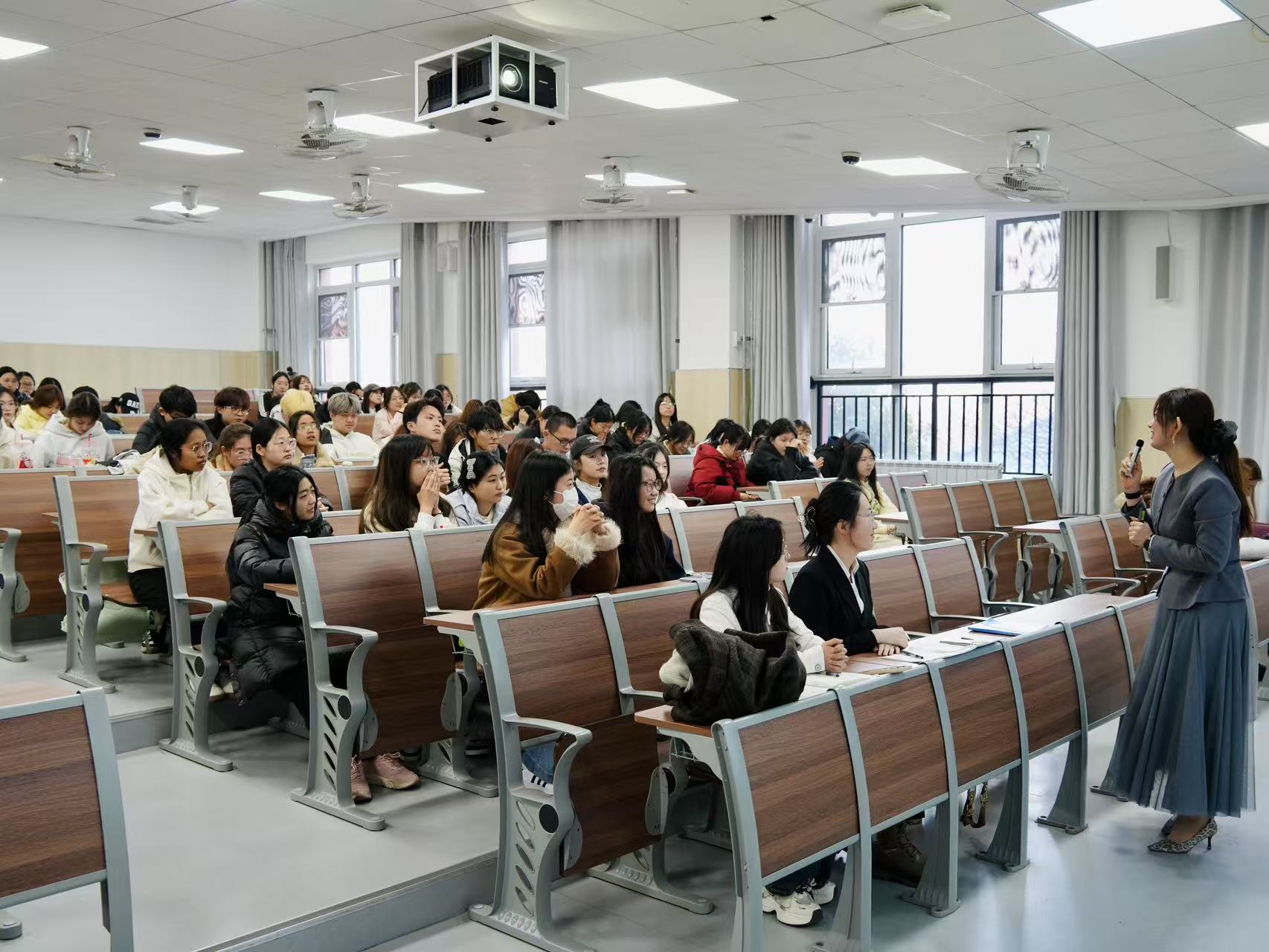 3月19日,beat365官方网站第三届青岛市青少年英语视频创作大赛校赛指导专题讲座在平度校区博学楼C201顺利举办。青岛市大学生英语演讲大赛首席导师及决赛裁判梁世芳主讲,外国院学院2024级英语专业全体学生参加。