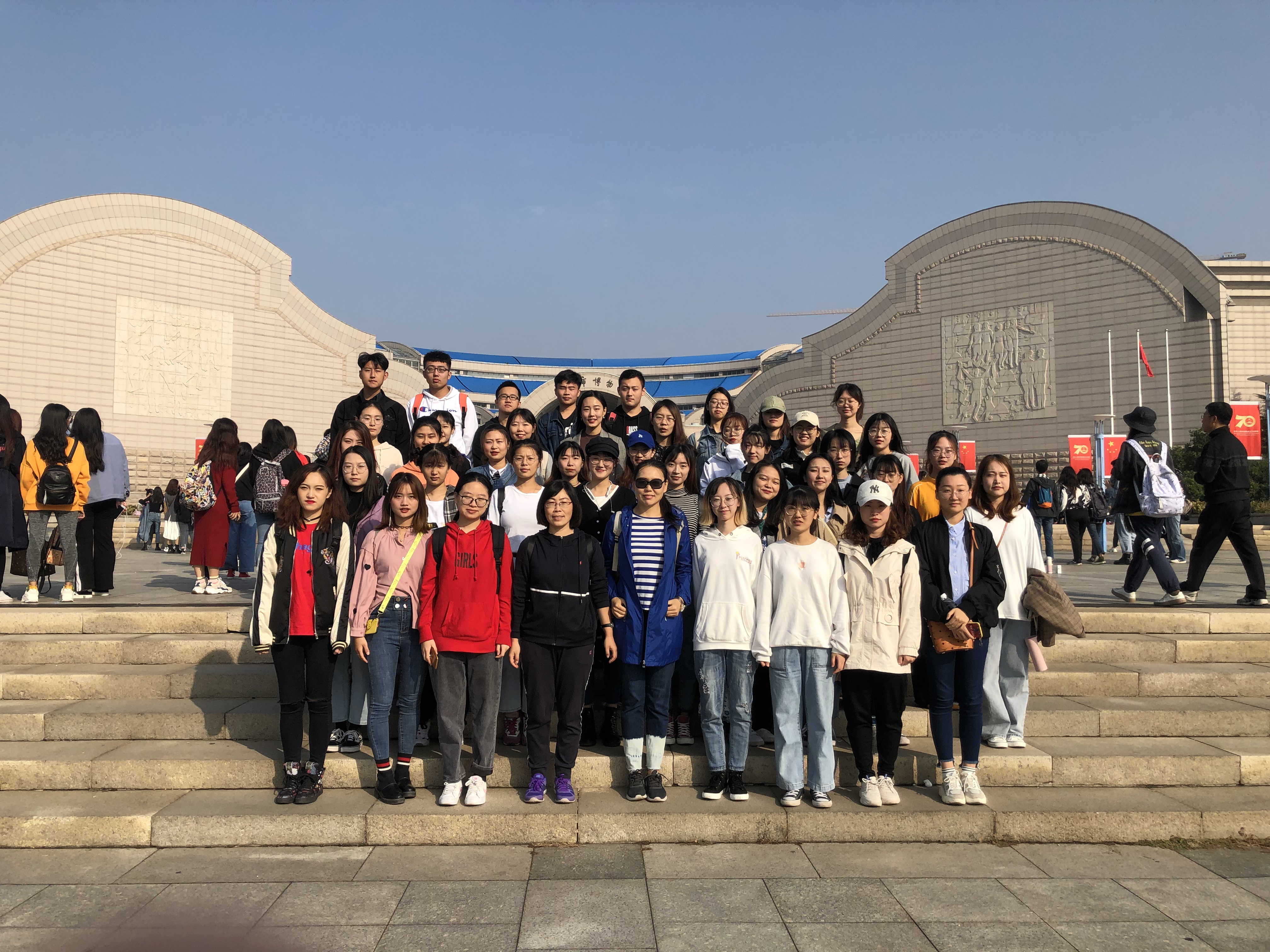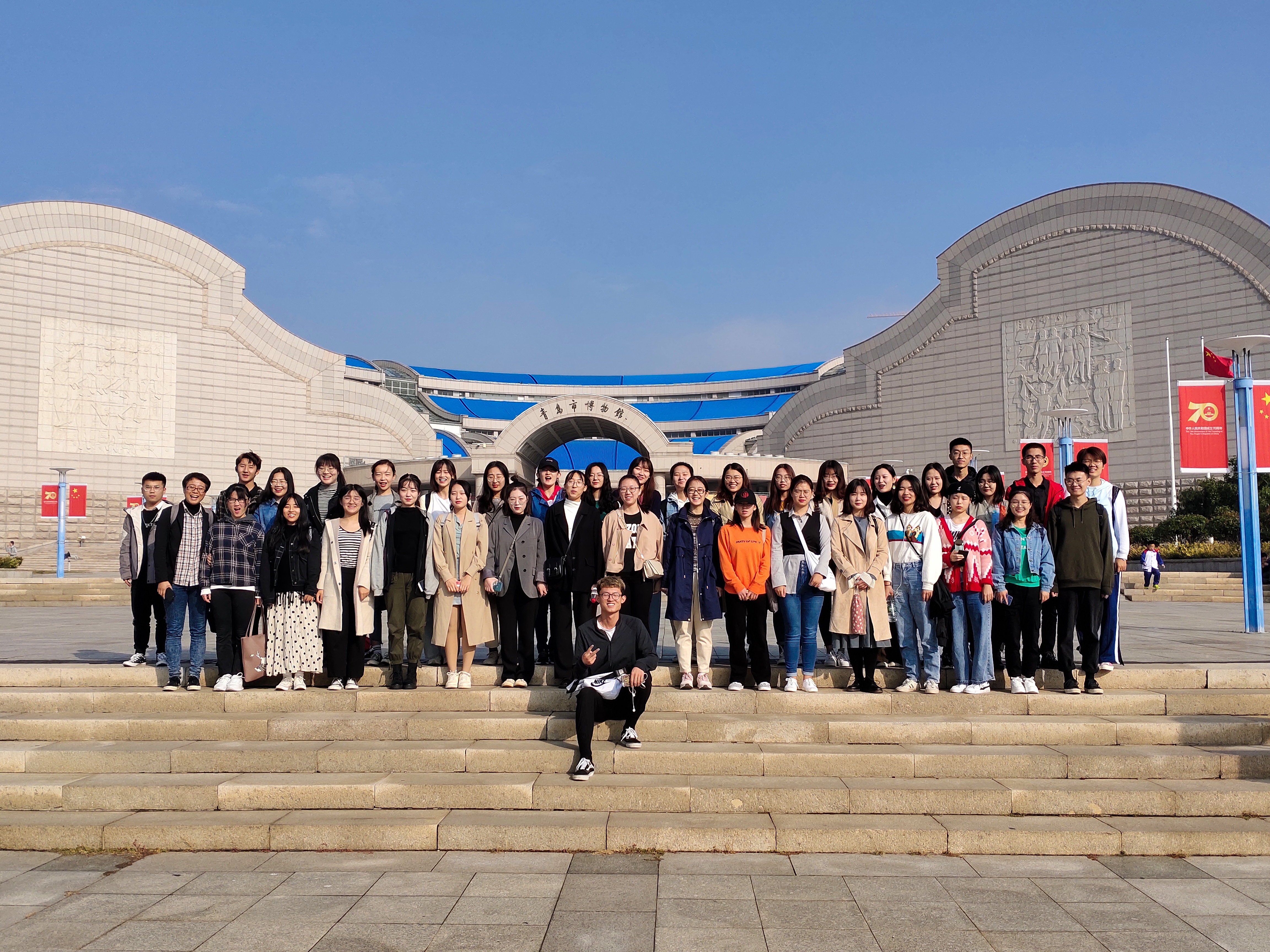 2019年10月13日,beat365官方网站组织学生赴青岛市博物馆进《高级英语I》课程实习活动。此次实习活动由专业英语教研二室教师董博宇带队,2017级英语专业和英语(跨境电子商务)专业学生245人参加。