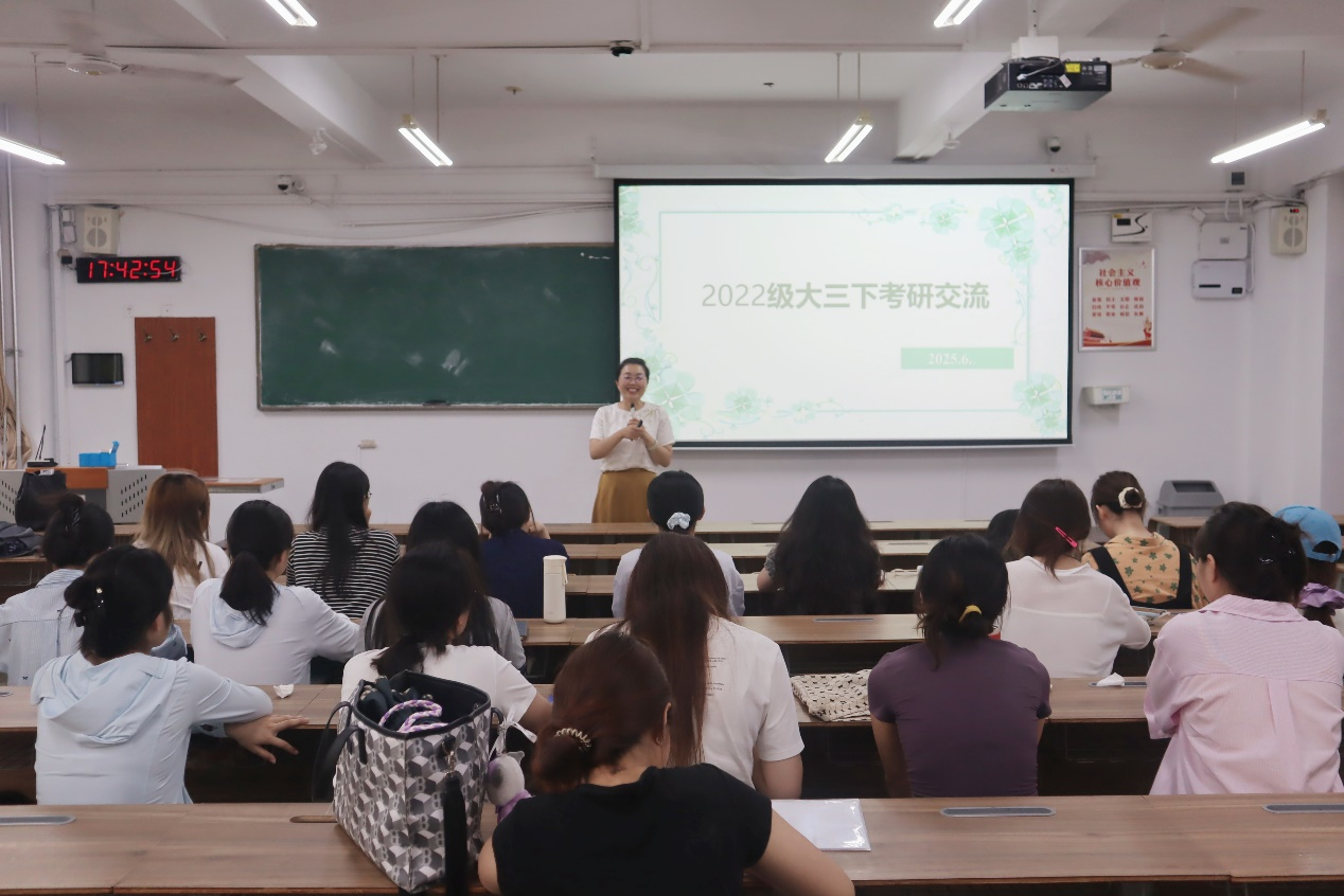 6月20日,beat365官方网站beat365官方网站英语系在教学楼C207召开英语专业大三学生考研动员大会。本次动员大会由英语系主任徐玉凤、副主任兼跨境电商专业负责人左燕茹及MTI教育中心主任姚雪丽主讲,2022级全体考研学生参加。