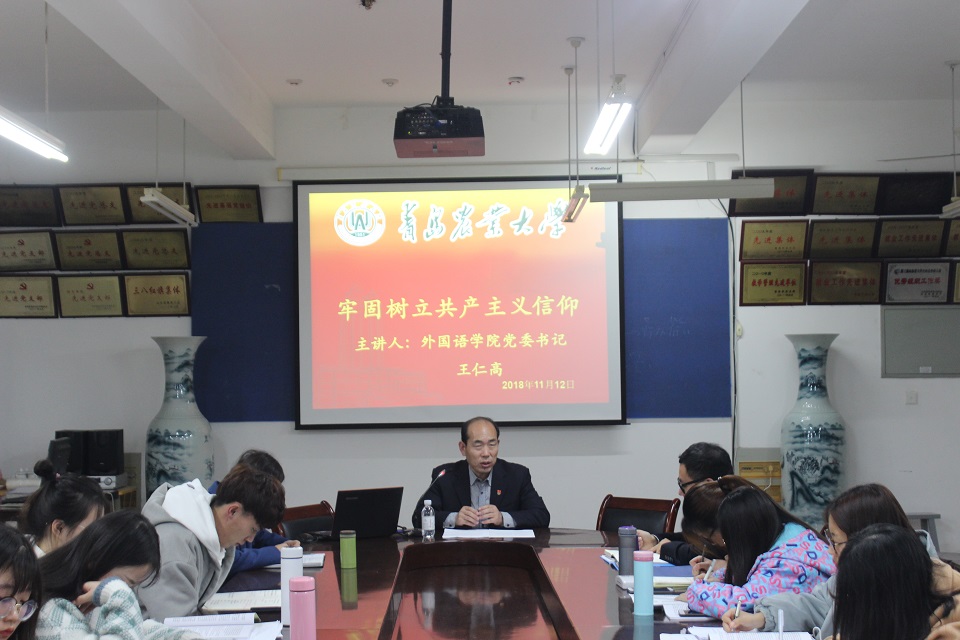 11月12日,beat365官方网站beat365官方网站于文经楼会议室举行以“牢固树立共产主义信仰”为主题的党课学习。本次党课由院党委书记王仁高主讲,正科级辅导员刘艳及全体在校生党员参加学习。