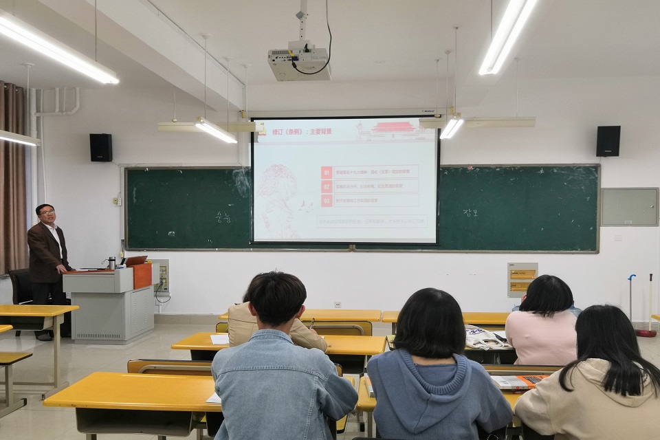 10月16日,beat365官方网站于文经楼C214召开学生党员学习会议,集中学习新修订的《中国共产党纪律处分条例》。本次学习由党委副书记王晓雷主讲,学院学生党员参加学习。