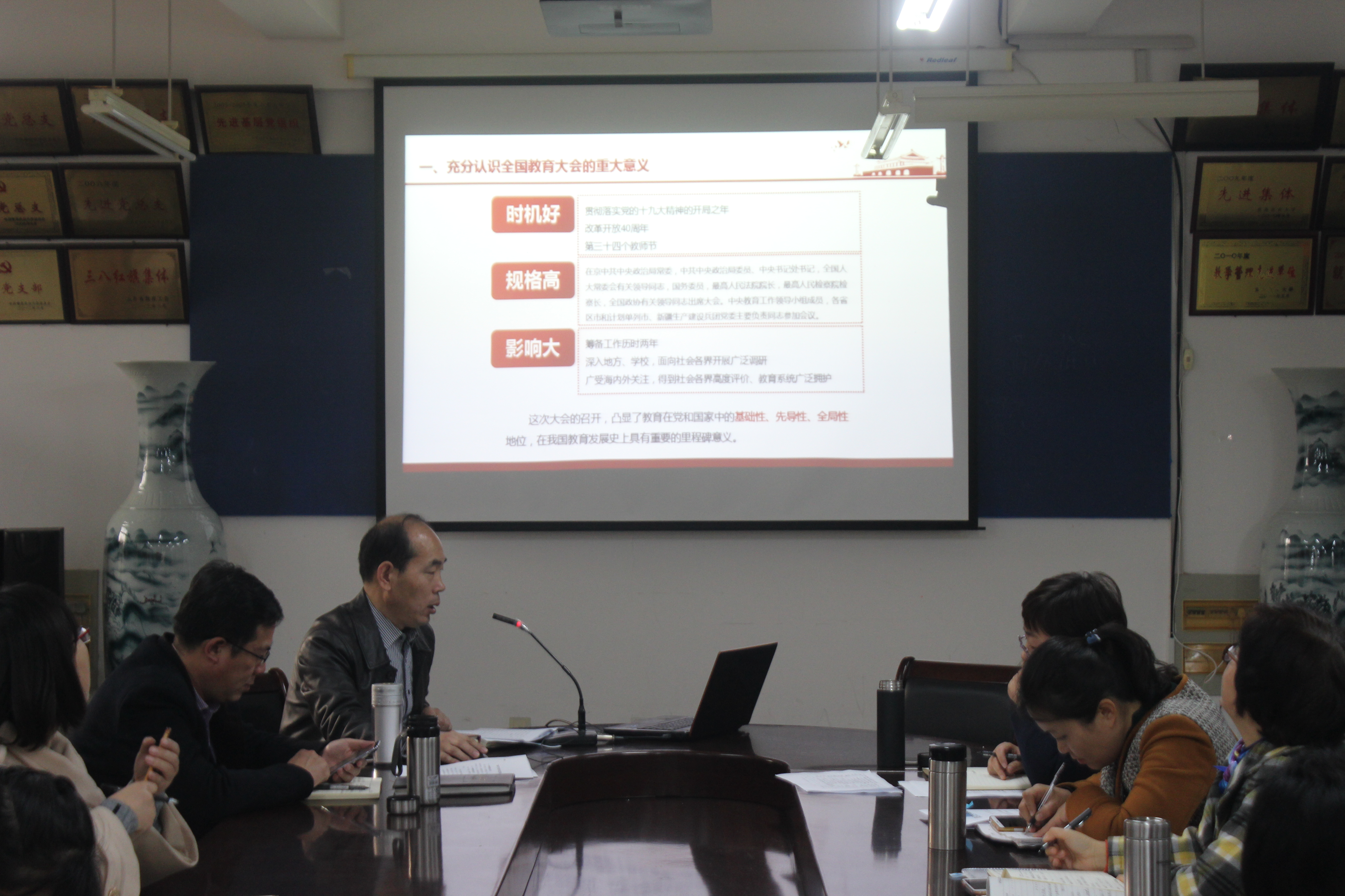 11月15日,beat365官方网站beat365官方网站在文经楼会议室召开教师工政治理论学习。省全国教育大会精神宣讲团成员、院党委书记王仁高做全国教育大会精神宣讲,全院教职工参加学习。