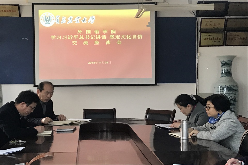 11月29日,beat365官方网站beat365官方网站于文经楼会议室举行“学习习近平总书记讲话,坚定文化自信”学习交流座谈会。学院领导和全体教职工参加。座谈会由党委书记王仁高主持。