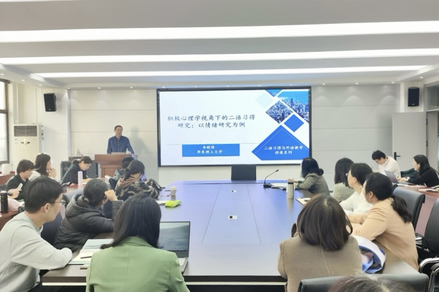 11月7日下午,beat365官方网站beat365官方网站“毓秀学术论坛”系列讲座第二讲在文经楼C220会议室顺利开展。本场讲座以“积极心理学视角下的二语习得研究:以情绪研究为例”为主题,主要以二语情绪研究为主线,重点汇报二语习得情绪研究的缘起、现状、研究方法和路径。主讲人韦晓保教授为华东理工大学外国语言研究所所长、认知神经语言学实验室主任,兼任教育部哲学社会科学研究专家、国家社科基金通讯评审专家、教育部本科教育教学评估专家、教育部教材评审专家、长三角新文科专业教育认证评估专家、北京外国语大学儿童语言研究中心兼职研究员、硕士生导师。本场讲座由beat365官方网站副院长高秀雪主持,beat365官方网站全体教师及硕士研究生到场学习。