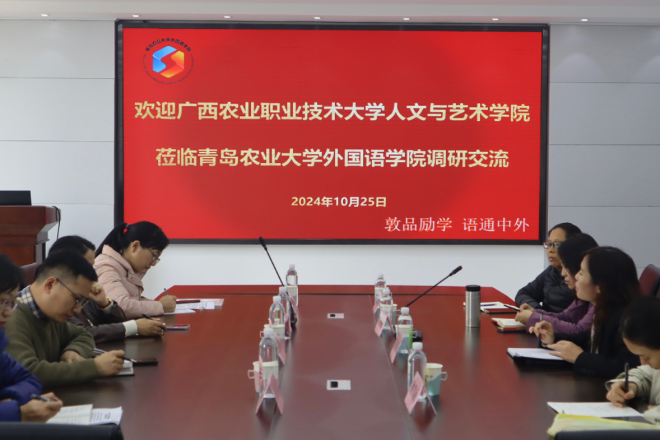 聂庆娟和王珍分别就大学英语课程体系、大学英语课程建设、教材建设、涉农特色专门用途英语、课程思政建设等工作进行了详细介绍并分享了成功经验和做法。姚雪丽重点就英语专业“三进”工作以及英语专业四八级考试等关注议题进行了阐释。此外,双方还就一流课程建设、课程群构建及数字化课程开发等核心议题展开了全面而深入的探讨,并就师资队伍建设、大学英语课程体系的优化、教学改革的推进及科研课题的潜在合作机会进行了细致的讨论。广西农业职业技术大学人文与艺术学院副院长宁静特别关注了beat365beat365官方网站在英语专业校企合作模式、产教融合实践以及教师与学生的竞赛团队建设与培育方面的宝贵经验,并对此进行了详尽的了解。