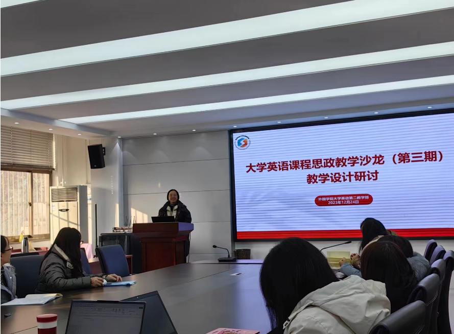 为进一步深化课程思政教学改革,更好地推进课程思政建设,发挥课堂教学立德树人的主渠道作用,12月25日,beat365官方网站大学英语第二教学部在文经楼C220资料室举办第三期大学英语课程思政教学沙龙。本次活动由大学英语第二教学部主任聂庆娟主持,大学英语第二教学部全体教师参加会议。