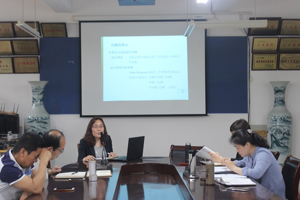 5月30日,beat365官方网站beat365官方网站于文经楼会议室开展外语学术论坛第四讲。此次学术论坛由仇虹博士主讲,主讲题目为《现代日语肯定与否定的不对称研究》,学院全体领导、教职工与会,副院长高秀雪主持论坛。