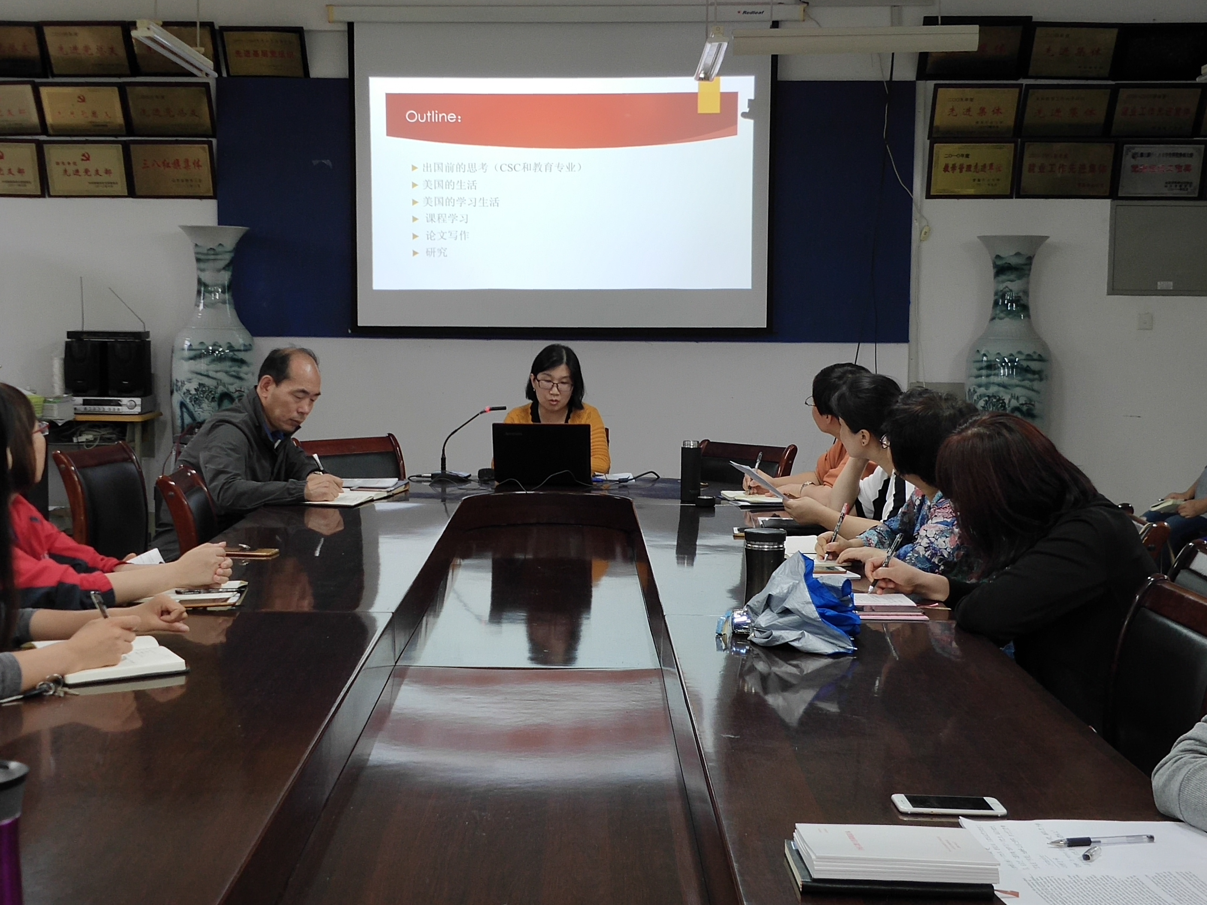 9月20日,beat365官方网站beat365官方网站于文经楼会议室举办首届外语博士论坛。论坛第一讲——“我的美国求学之路:探索与未知”由2018年7月刚从美国奥本大学学成归来的高艳艳博士主讲。学院领导及全体教职工与会,副院长纪卫宁主持论坛。