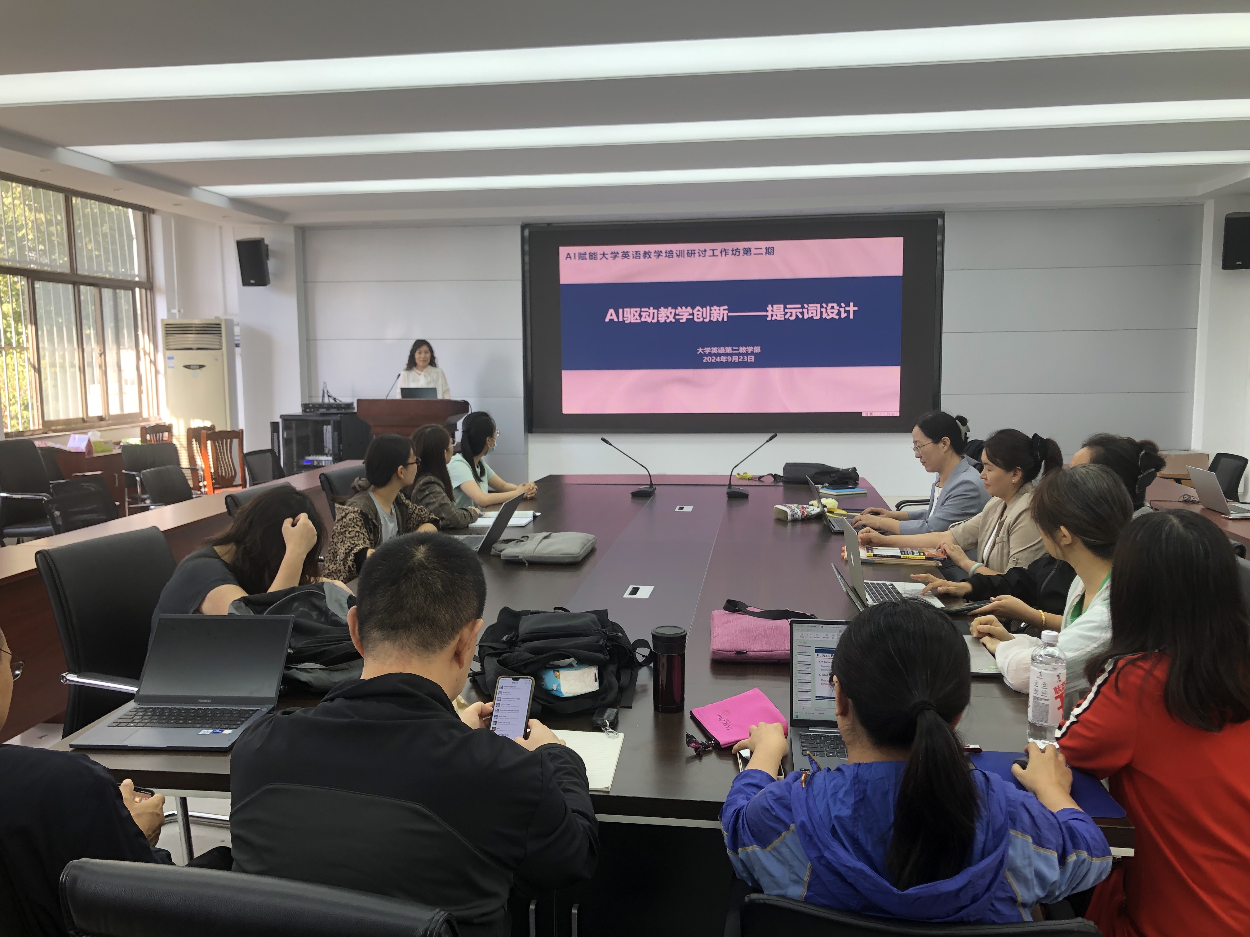 为扎实推进国家教育数字化战略行动,将人工智能技术新优势转化为教学改革发展的新动能,积极探索“AI+教育”在专业与课程建设中的深度融合路径,2024年9月23日beat365官方网站大学英语第二教学部在文经楼C220进行AI赋能大学英语教学培训研讨工作坊,本期活动主题为AI驱动教学创新——提示词设计,由大学英语第二教学部主任聂庆娟主持并带领全体教师进行AI实操训练。