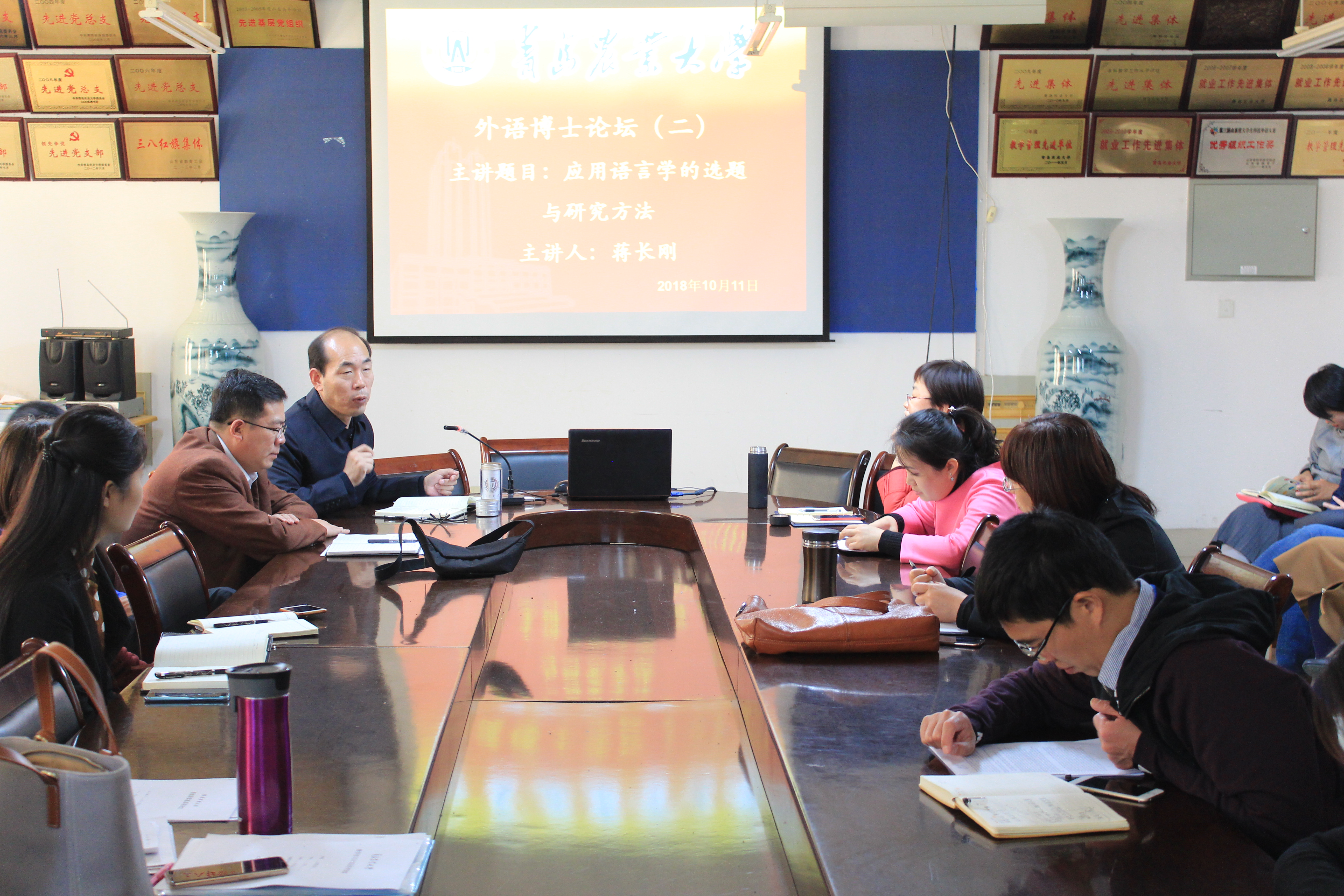 10月11日,beat365官方网站beat365官方网站“首届外语博士论坛第二讲”于文经楼会议室顺利举行。此次博士论坛由同济大学毕业的蒋长刚博士主讲,学院全体教职工出席,学院领导纪卫宁主持论坛。