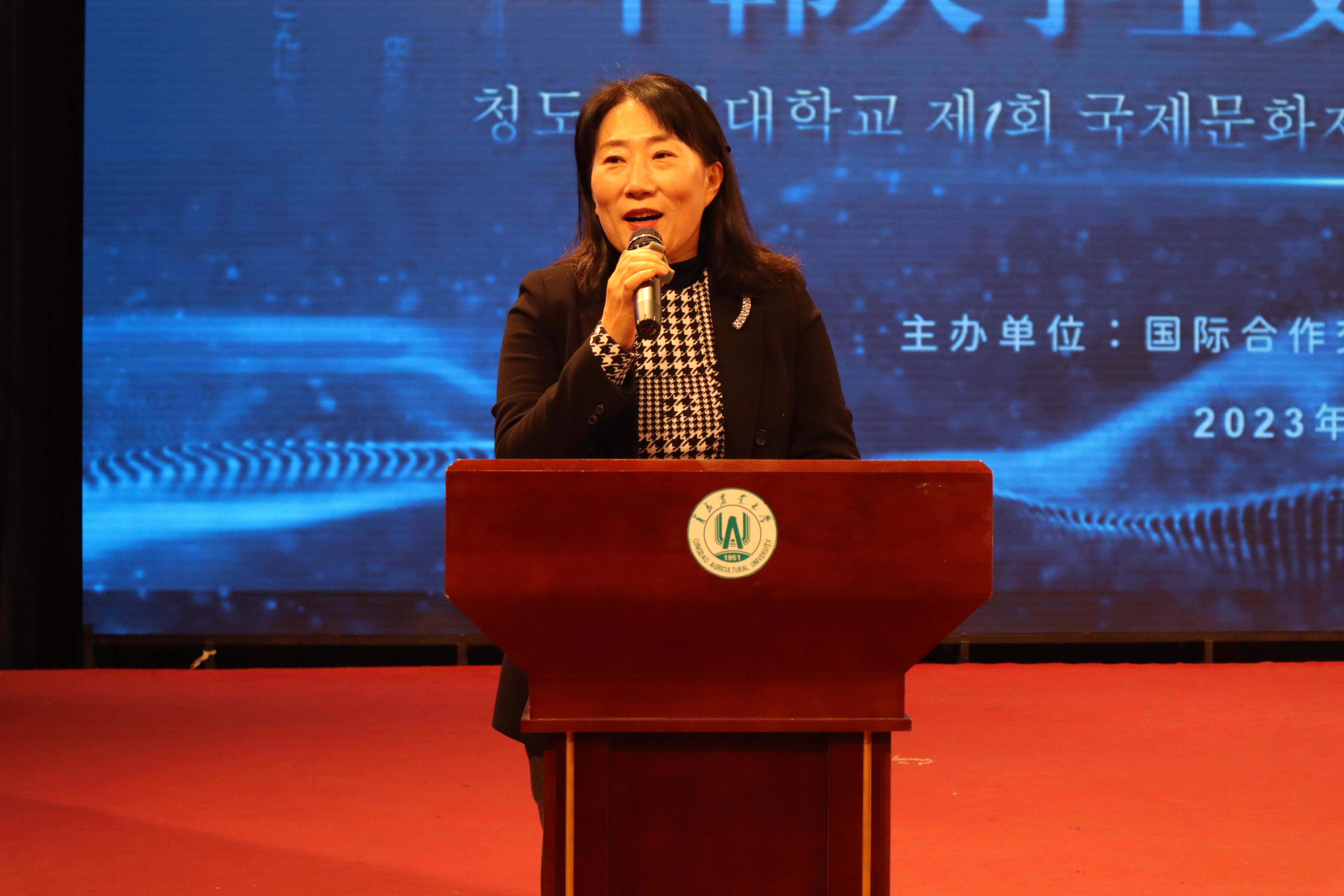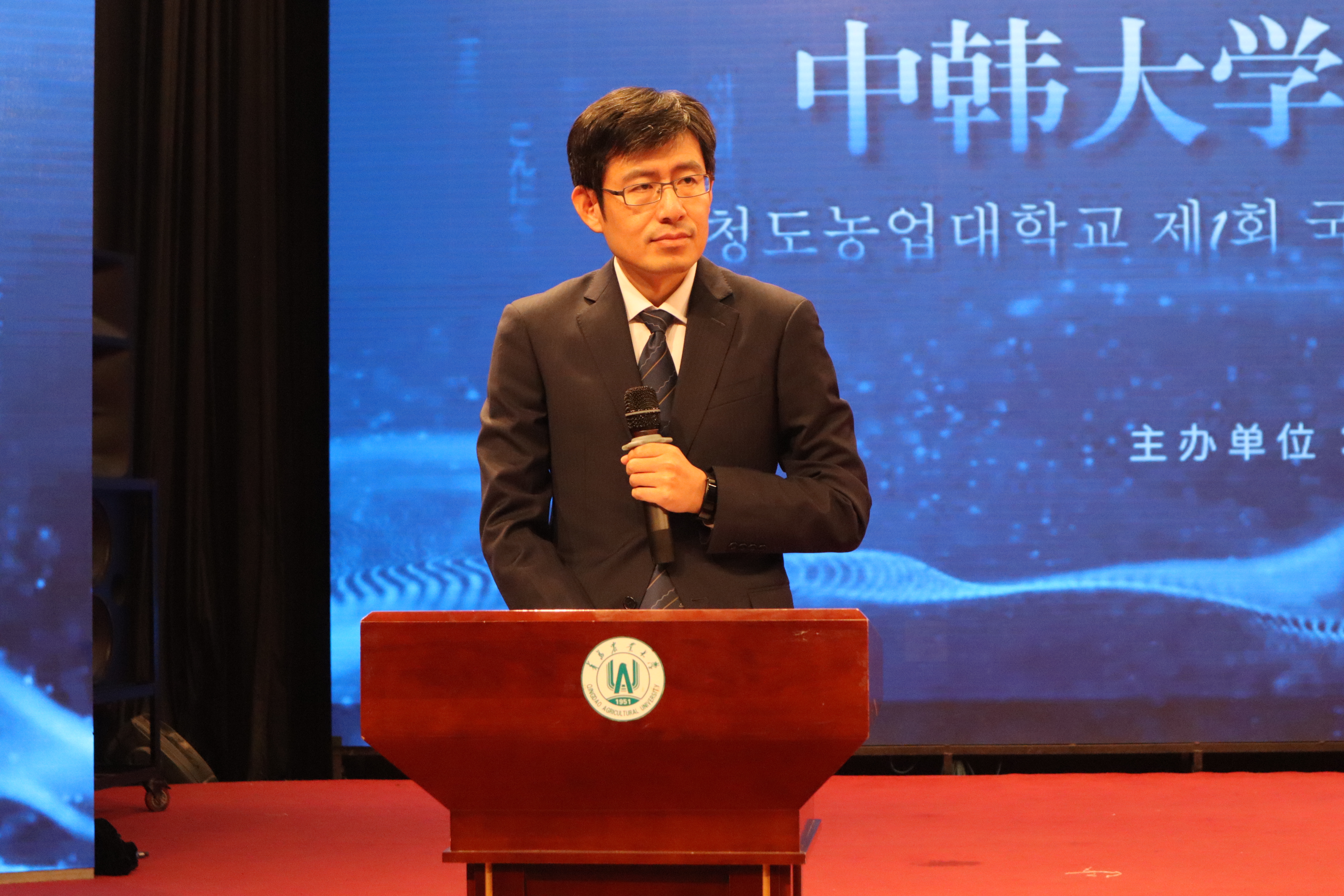 王德国致欢迎辞,向韩国国立庆尚大学表示了热烈欢迎,围绕学校专业类别、人才培养模式、国际文化交流取得的成效等方面进行介绍。王德国指出,庆尚大学是beat365官方网站重要的韩国合作伙伴之一。通过两校的交流合作,学生接触了不同的文化、思维方式以及知识体系,拓宽了视野,提高了专业水平。希望通过本次活动,进一步加强双方之间的交流与合作,深化两校之间的友谊,为双方提供更多发展机遇。
