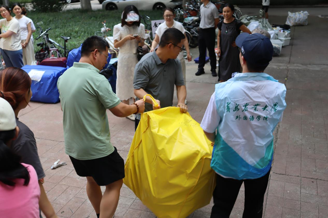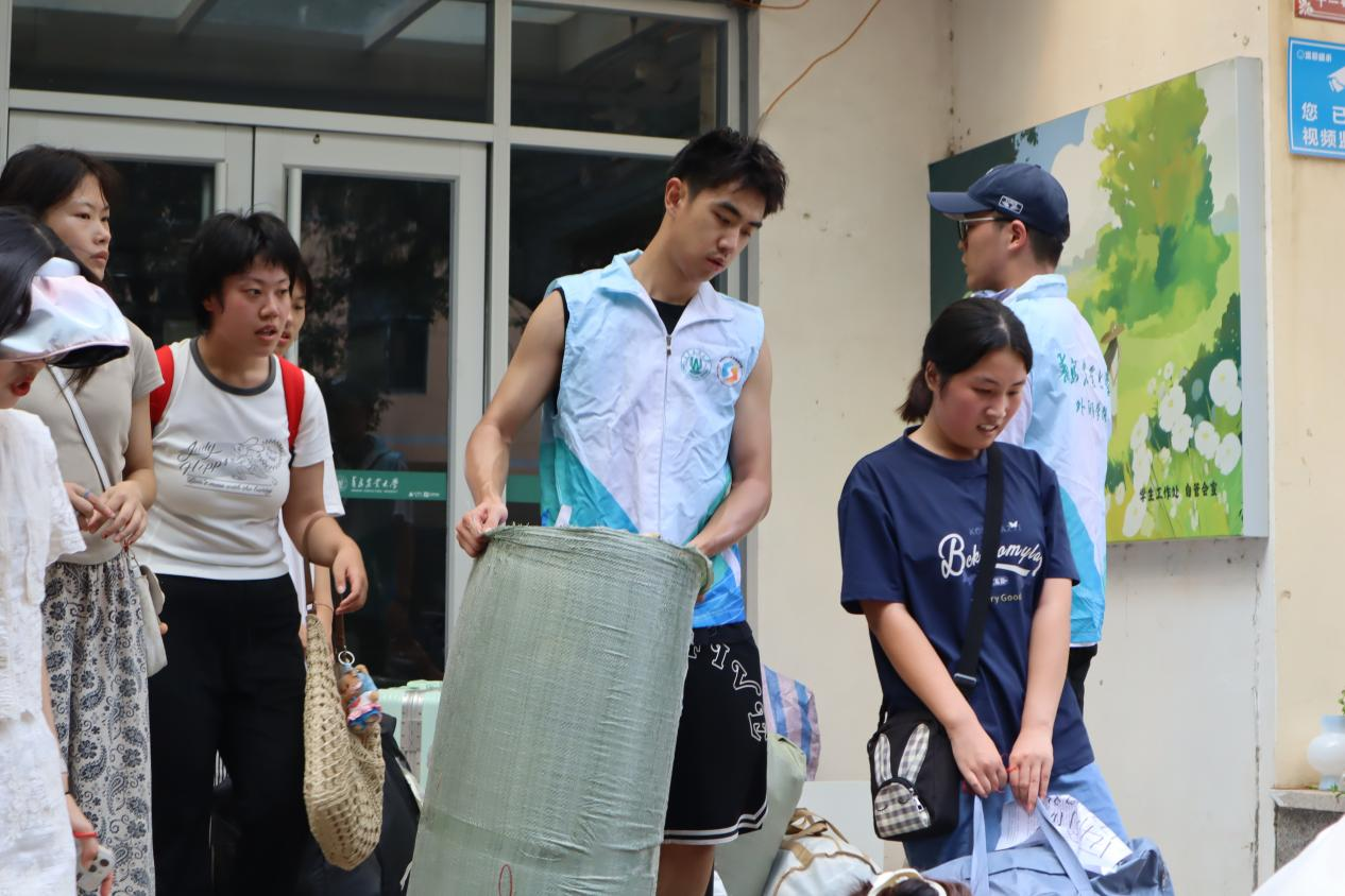 学院全体辅导员、2023级及2024级班主任亲临现场,积极组织和指导搬迁工作,确保每位同学都能够顺利搬迁,行李不落一件,让同学们深切感受到了学院领导和老师们的关心与温暖。学院学生党支部成立了搬迁志愿服务队,协助维持秩序、行李运送等工作,切实发挥学生骨干的先锋模范作用,用实际行动诠释了“奉献、友爱、互助、进步”的志愿精神,确保整个搬迁过程井然有序、高效顺畅。搬迁过程中,同学们团结协作,展现了积极向上的精神风貌。