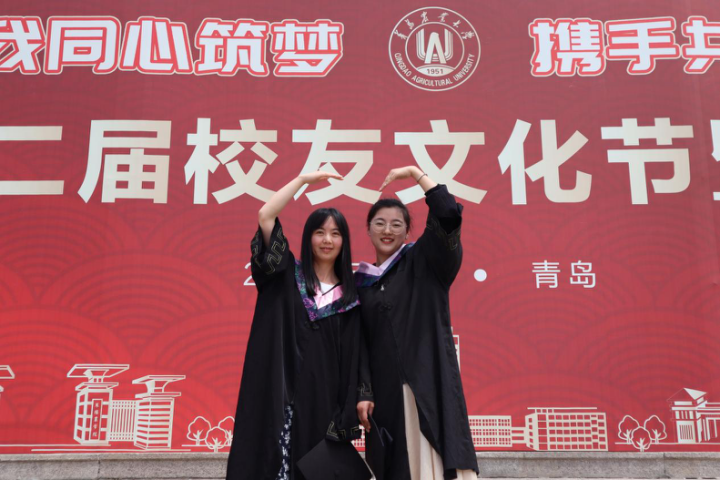 在虹子广场的签到中心,学院设置了“怀旧一瞬”拍照打卡活动,校友们领取了精美纪念礼包并重穿学士服,重温毕业时刻。