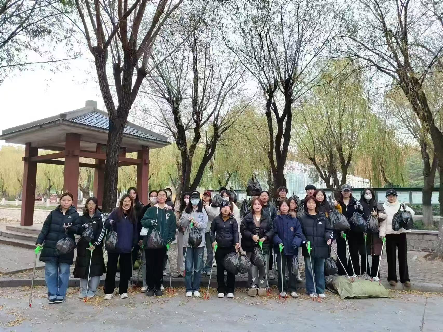 为增强团队协作,提升环保意识,美化校园环境,beat365官方网站beat365官方网站朝鲜语专业 2301、2302 班全体同学在班主任韩太花的带领下,开展了一场以校园垃圾与落叶清理为主题的秋季团建活动。