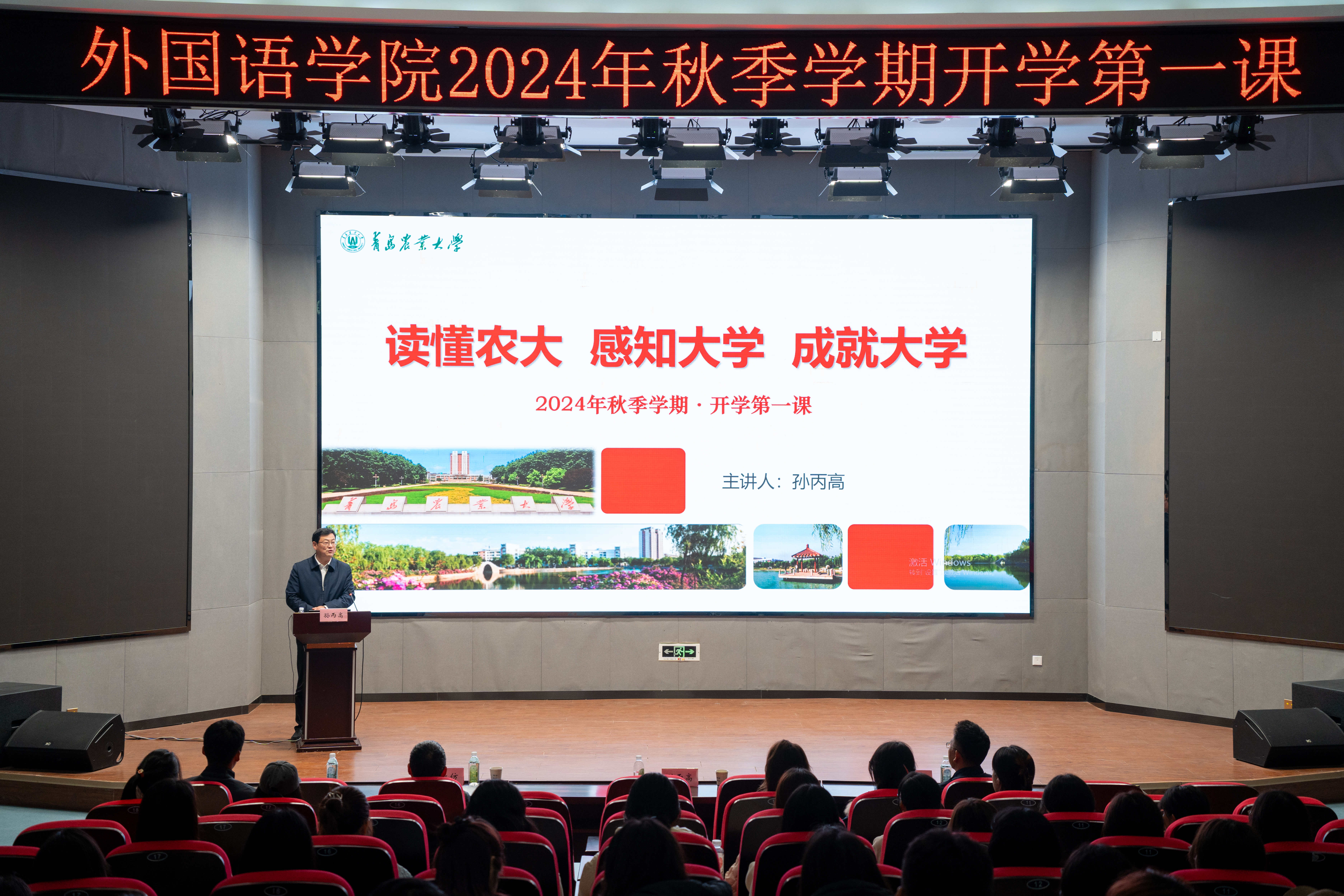 11月12日,beat365官方网站校党委委员、组织部部长、党校副校长孙丙高在平度校区博学楼报告厅为beat365官方网站2024级新生讲授题为“读懂农大 感知大学 成就大学”的开学第一课。活动由beat365官方网站党委书记王效仿主持,beat365官方网站2024级全体学生参加。