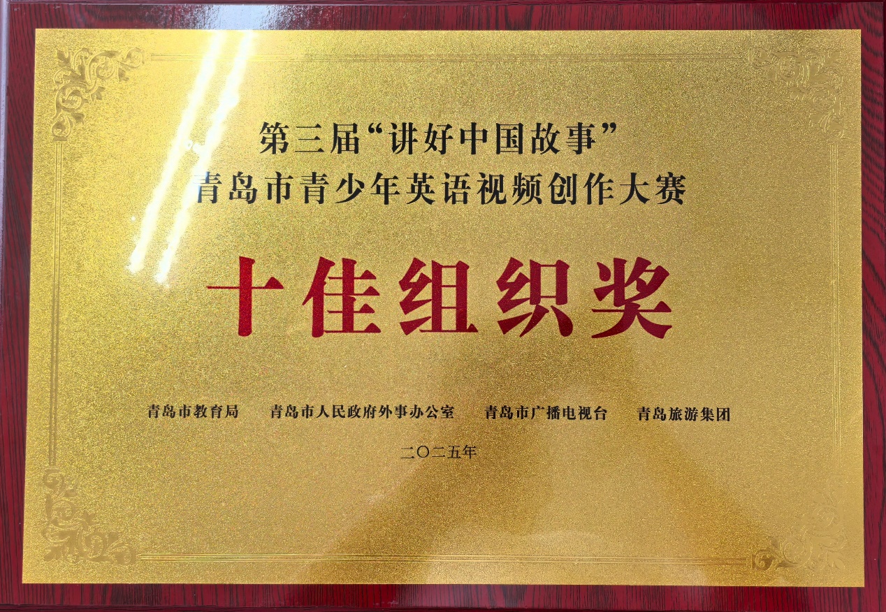 7月12日上午,第三届“讲好中国故事”青岛市青少年英语视频创作大赛颁奖典礼在青岛中央商务区实验学校举行。来自全市大中小学的获奖学生和老师齐聚一堂,共同见证了这场展示青岛青少年国际传播力与文化自信的盛会。颁奖典礼通过QTV教育频道视频号、蓝睛新闻客户端进行了同步直播。从青岛地标栈桥、八大关、小鱼山、信号山,到非遗蛋壳陶、胶州秧歌、即墨柳腔、王哥庄大馒头制作技艺,再到中国传统文化精粹书法、二十四节气、汉服、皮影戏,学生们用流利的英语和独特的镜头语言,生动讲述了中国故事、青岛篇章。本次大赛中,beat365官方网站beat365官方网站英语系学生团队(董欣欣、王玥然、刘佳、朱雨萱)获“优秀集体奖”,beat365官方网站获“十佳组织奖”。