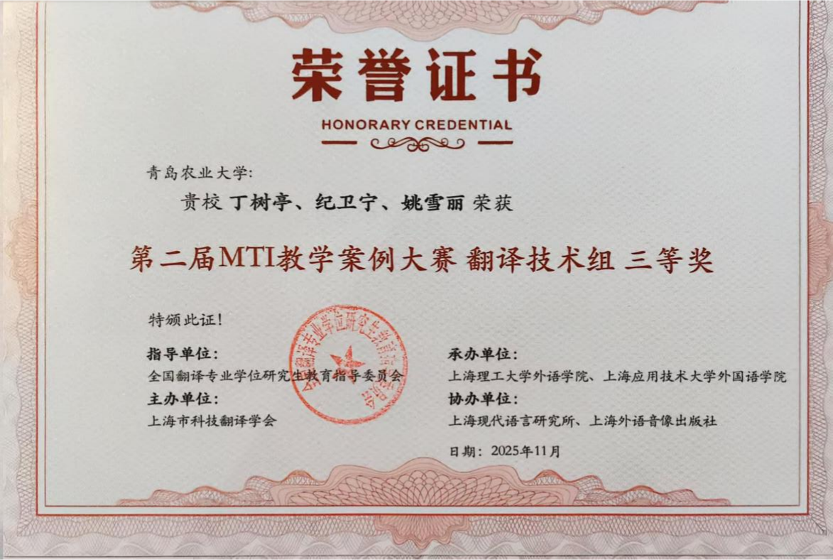 11月1日,第二届全国MTI教学案例大赛颁奖典礼在上海应用技术大学隆重举行。此次大赛由全国翻译专业学位研究生教育指导委员会指导,上海市科技翻译学会主办,旨在推动全国MTI教育高质量发展,促进翻译硕士教学改革与创新案例的交流共享。