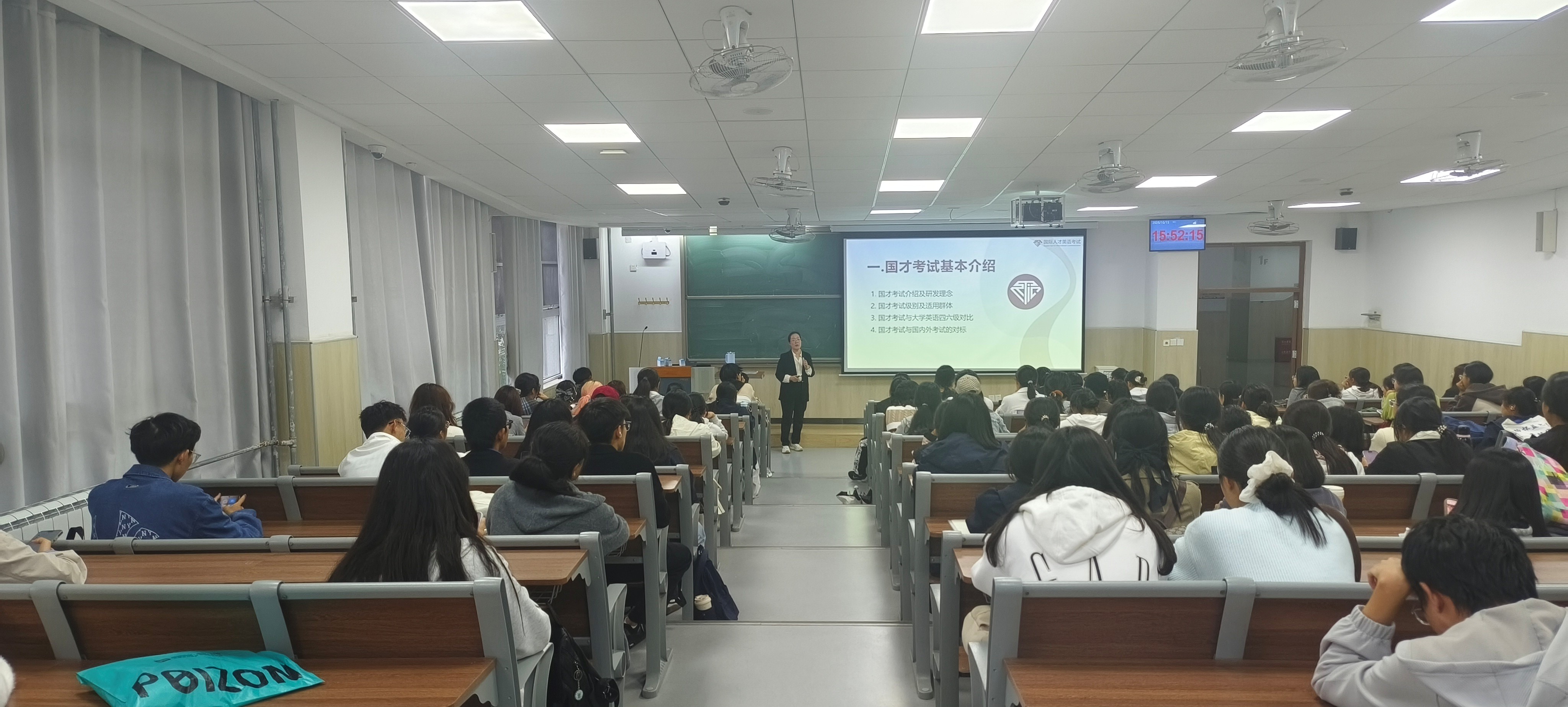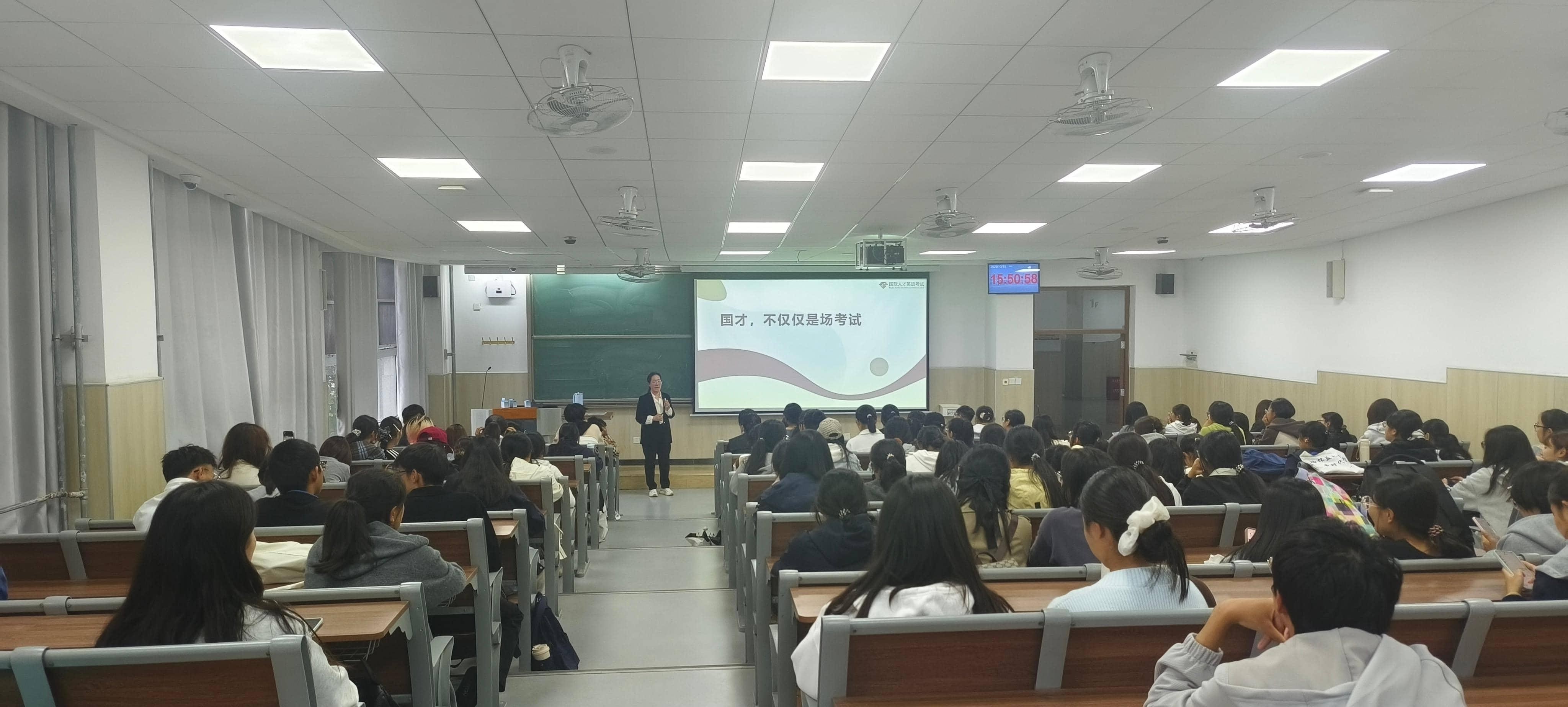 讲座围绕国才考试基本介绍、国才考试证书价值、2025年下半年国才考试三个部分展开,为学生详细介绍了国才考试以及国才考试证书在不同方面的应用价值。首先邹秋娟从国才考试研发理念、国才考试级别及适用群体、国才考试与大学英语四六级对比、国才考试与国内外考试的对标四个方面对国才考试进行基本介绍。在国才考试证书价值部分,邹秋娟从企业参观-实习实践、国际平台-志愿服务、求职就业-绿色通道、能力提升-助力考研、外卡资格-助力竞赛等方面详细解读国才证书在企业实习、志愿服务、求职绿色通道、考研加分、竞赛外卡等方面的作用。最后邹秋娟介绍了2025年下半年国才考试的时间安排、报名方式、备考资源、报考福利等方面的内容。