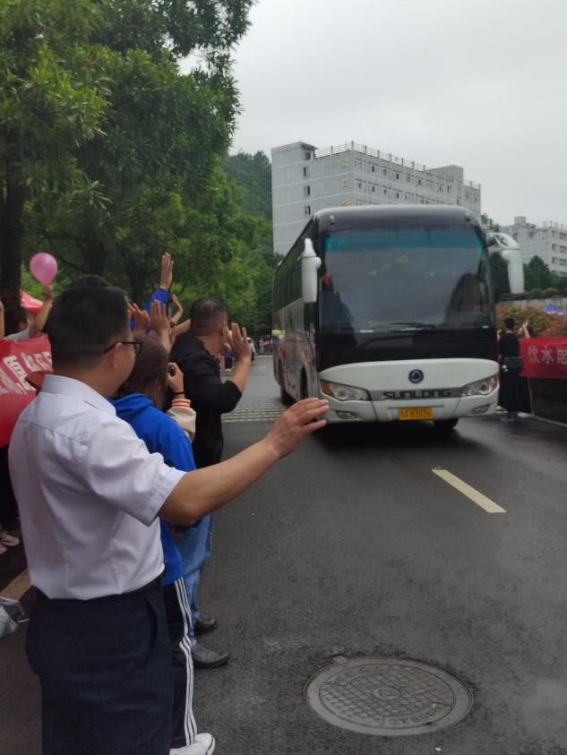 离别时,学院领导和辅导员老师都前来送别,辅导员韩默然老师为同学们送上了毕业寄语,希望同学们在新的起点,新的环境中历尽千帆、不断进步。党委书记吴亚平、院长罗绪强等学院领导和老师一一向校车上的同学挥手道别。