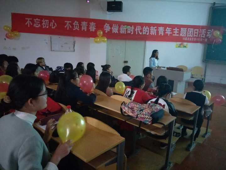 此次主题团日活动于11月17日晚上6点正式开始,由16农业资源与环境1班团支书徐倩主持此次活动。首先同学们观看了《党的第十九次全国代表大会报告全文》的相关视频,同学们在认真仔细观看后,深刻学习领会到中国特色社会主义新时代的新论新、我国社会主要矛盾发生的新特点、分两步走全面建设社会现代化国家的新目标及党的建设的新要求的具体内容。随后,同学们根据自己对十九大精神的理解进行自由发言,很多同学根据自己家乡近几年的变化,阐述了自己对于十九大精神的理解。最后周光红老师针对本次“不忘青春,不负青春,争做新时代的新青年”团日活动主题发表了讲话,她首先回顾了一下党的发展历史,然后结合自身的经验,及对党的认识,让大家充分认识到学习和贯彻党的十九大报告精神的重大意义,应该做到切实把思想和行动统一到习近平总书记重要讲话精神上,奋力开启新征程,实现新跨越,谱写新篇章。同时也对同学进行了寄语:青年树立什么样的人生理想,选择什么样的奋斗方向,对于走好一生的路至关重要。让我们深刻理解作为青年一代应该担负的历史使命,用伟大的中国梦激扬青春梦、努力成为“有理想、有本领、有当但”的优秀青年。本次活动在同学们的掌声中取得全满的成功。