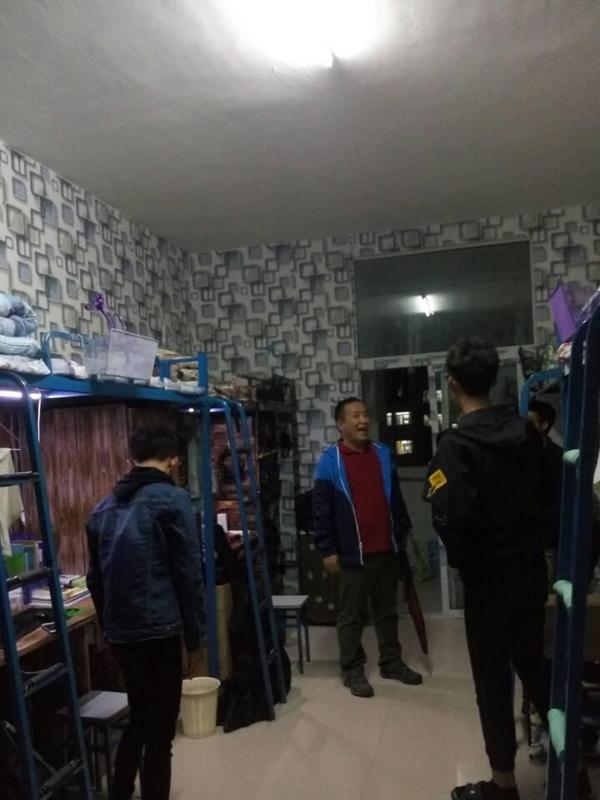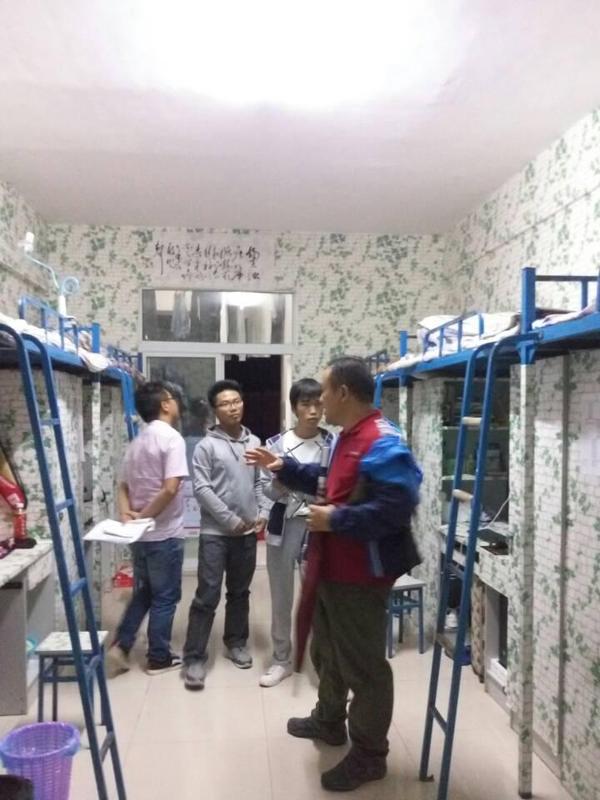 10月13日晚间,地理与旅游学院党委书记吴亚平带领部分辅导员和学生助理对地旅学院男生宿舍进行了无遗漏的检查和整改指导。对每一间宿舍整洁、安全、文明言行情况进行记录,现场指出需要整改的重点方面,对每一间宿舍提出整改标准、整改期限、整改不达标的处罚措施。在检查和指导教育过程中,吴亚平重点提出“三面整改两个必须”的整改要求,即在遵循学生宿舍空间布局规律和方便日常学习生活的基础上,要求学生对 “床面空间、桌面空间、地面空间”进行全面规整,完成“三面整改”任务。 “两个必须”则要求学生在宿舍的行为举止,“必须遵守宿舍安全规定”、“必须遵循文明与公德”。