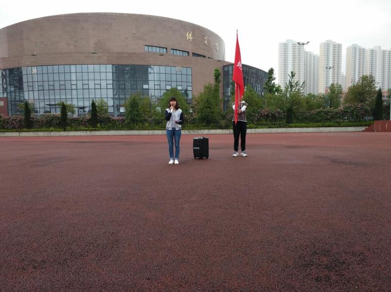 虽然天气微凉并伴有绵绵细雨,但同学们仍然有序提前入场站定,并且都认真安静、肃穆地参加完升旗。本次团日活动的主题为“不忘初心跟党走”,学生代表刘乐鑫同学作国旗下讲话,王艳同学作主题发言。发言重点强调了“当代青年要与时俱进,才能担当这个时代赋予的历史责任,无论做任何事都要不忘初心。”此次发言正对应习主席5月3日在中国政法大学考察中做重要讲话时说的“中国的未来属于青年,青年一代的各方面展示是一个国家发展活力的重要体现”。结合才过去不久的“五·四青年节”,足见国家对我们青年寄予的厚望,作为新时期青年我们更应该展现青年的朝气把党的精神传承下去。