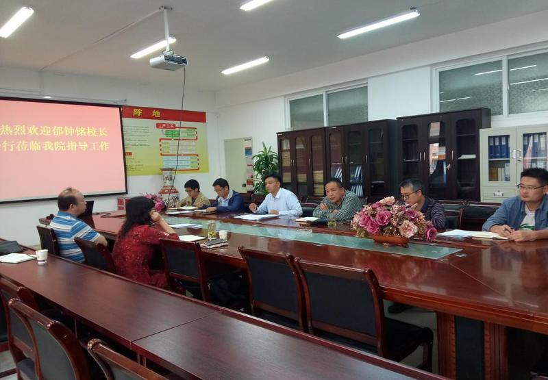 最后,郁钟铭做总结讲话和工作指示。他充分肯定了地旅学院近年来取得的成绩,并指出在新的历史发展时期,学院领导班子在工作中要急学院之所急、想学院之所想、忧学院之所忧,理清工作思路,努力树立典型。郁钟铭校长就学院目前的现状,对地旅学院未来的发展做出进一步指示:一是坚定信心,做好规划。全院师生要看到自身的亮点,要对学院未来的发展充满信心,要进一步做好“十三五”期间的事业发展规划和子规划,认真研究,做好本科教学工作,做好专业群建设;二是依靠教师,办出特色。领导班子要看到中层干部和年轻教师的努力,完善激励机制,提高老师们的工作积极性,才能有力推进应用型人才培养和学科建设工作。三是资源共享,论证严谨。一方面要积极争取资金支持,扩大实验室建设规模,另一方面要整合现有资源,提高使用效率。仪器设备首先要保障本科教学的正常进行,在此基础上做高水平、高层次的科研工作;四是提升能力,服务地方。首先要通过督导、教师相互听课、继续教育培训等方式使教师教学能力提升工程常态化,加强“双师型”教师培养;其次要结合贵州经济社会发展的需求,大胆创新,提升科研能力,完善学科体系;最后要党政共抓,提升管理能力,将学院各项工作推上新的台阶。