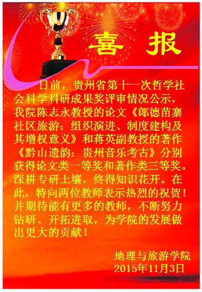 beat365官网参加贵州省教育学会地理教学专业委员会2015年学术年会 三位教师当选新一届理事会理事长、秘书长和副秘书长