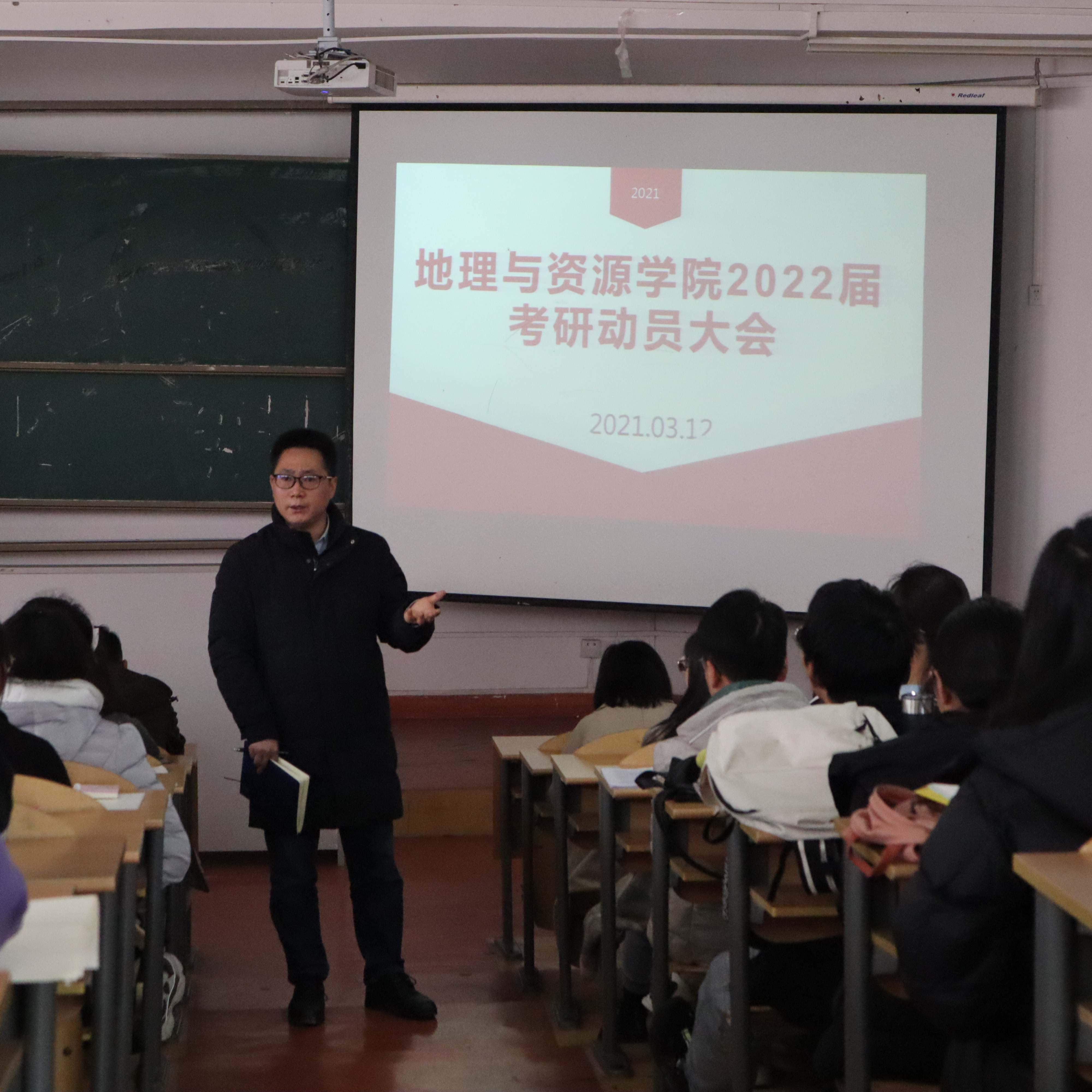 罗绪强首先用详实的数据分析了全国和贵州省高校毕业生近五年人数变化情况、人才需求动态变化等,强调了考取研究生进一步深造的必要性、重要性和紧迫性。然后,结合本学院近几年学生的考研录取率变化情况,特别是今年学院考研学生上线了34名的案例给同学们加油鼓劲,提醒同学们考研要早准备、坚定信心、认真复习备考,最后,强调了诸如包括专业和学校的选择等注意事项,并预祝同学们考研成功。
