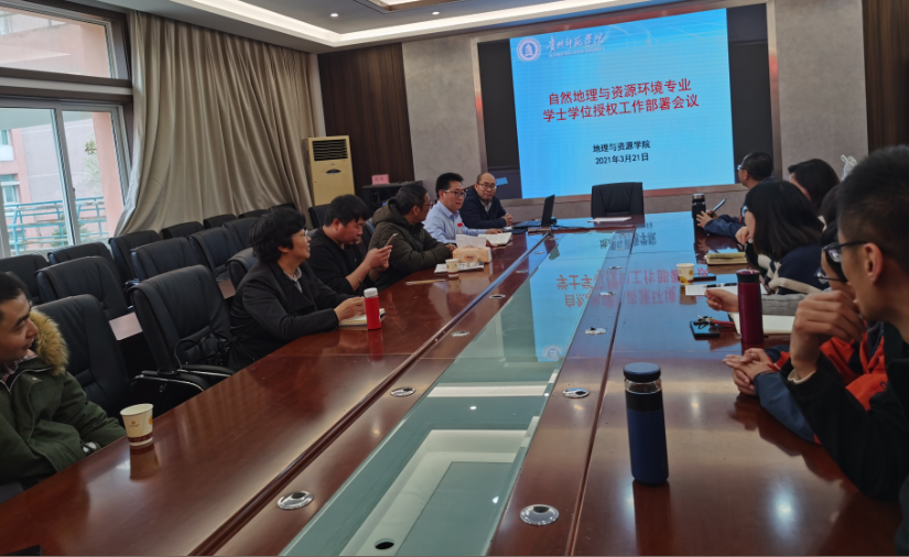 会上罗绪强对2020级地理学科大类招生的培养目标做了全面的讲解,对自然地理与资源环境人才培养方案的修订,其总体要求是把学生培养成为具有地理、资源和环境综合性学科知识的应用型人才。对自然地理与资源环境专业学士学位授权具体工作做了部署,要求对照《贵州省普通高等院校新增学士学位授予专业授权评审指标体系(试行)》,全系老师积极准备,落实分工,全院教师全面配合,确保自然地理与资源环境专业顺利通过学士学位授权评估。
