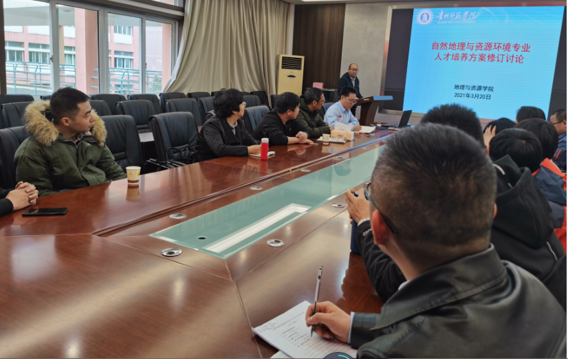 张伟与全体老师一起就2020级自然地理与资源环境专业的人才培养方案进行讨论,会议商定从2020级开始,自然地理与资源环境专业在原2018版培养方案的基础上,根据西南地区人才需求实际和学校应用型人才培养的定位,增设资源类和环境类侧重应用型的课程,会议还商定了各学期具体的课程安排。
