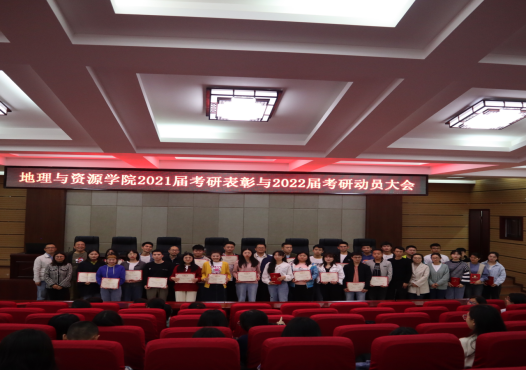 按照预定方案,首先,由副院长罗光杰作2021届考研工作总结报告。罗光杰对2021届学子们在考研过程中取得的优异成绩表示祝贺,激励地资学子砥砺前行,脚踏实地的走好人生的每一步路。学院党总支书记吴亚平对总结报告予以肯定,高度赞赏学院2021届考研工作成绩,并提出2022届学院考研工作奋斗目标,殷切期望2022届考研工作再创佳绩。紧接着罗光杰宣读了《beat365平台唯一官网关于表彰2021届”考研先进集体和个人”的决定》。资源环境系获得学院“考研工作先进集体”荣誉,罗洋、罗绪强、张淑卿、郑延丽、杨鸿雁、刘丹丹6位老师获得学院“考研工作先进个人”荣誉,赵升等36名同学获得学院“考研先进个人”荣誉。