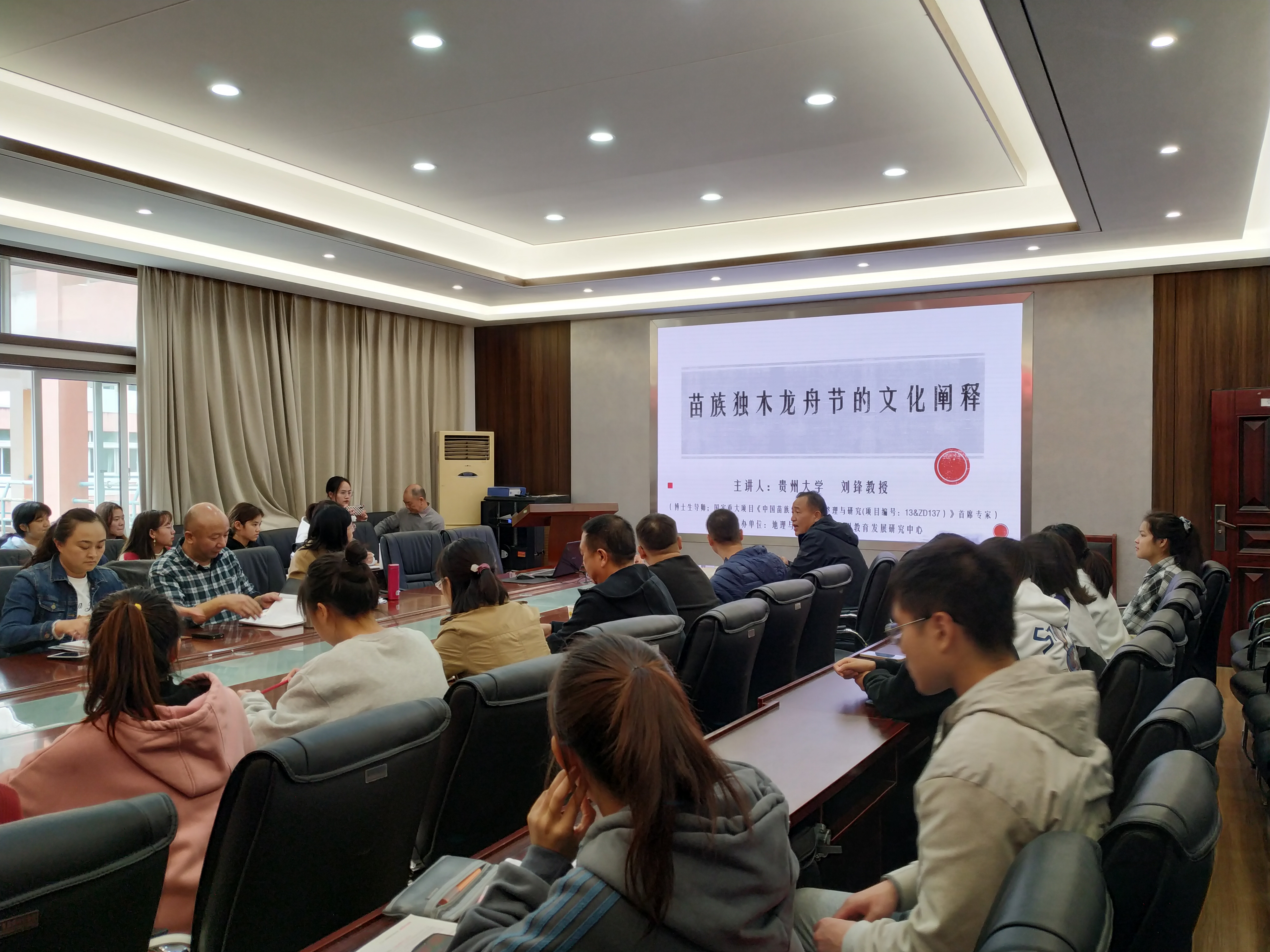 2021年10月19日下午,受beat365平台唯一官网邀请,贵州大学博士生导师、刘锋教授在该学院会议室做了题为“苗族独木龙舟节的文化阐释”的学术讲座。本次讲座由beat365平台唯一官网党委书记吴亚平同志主持,有近40名在校师生现场聆听。