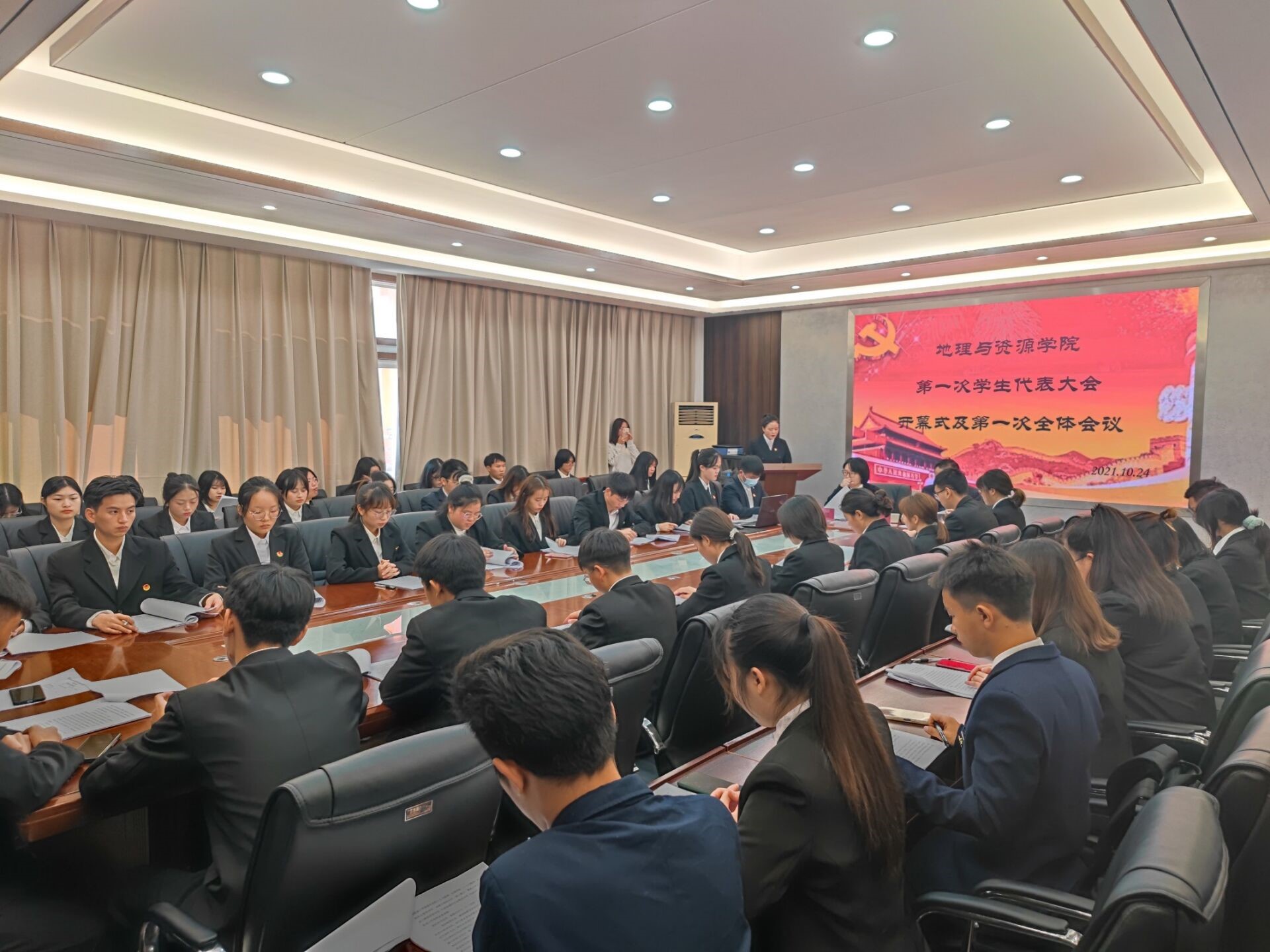 10月24日上午10点至10点30分,在宁静楼325召开了由王倩主持的预备会议。各学生正式代表听取报告人陈凤报告大会筹备工作报告(草案),通过了大会议程,代表资格审查情况(草案)等报告。由大会主席团通过各分团团长、副团长名单和大会议程。下午2点到4点30分,在宁静楼325召开了由王倩主持的正式会议,会议在奏唱国歌中拉开序幕。开幕式上,吴亚平对上届学生会的工作作出了肯定,也对下届学生会工作提出要求。淳淳话语、殷殷嘱托,鼓舞人心、催人奋进。紧接着,在六次分会议后,选举产生了第一届学生委员会和第一届学生会主席团成员。大会结束后,各正式代表通过学生会工作报告的决议,并全体奏唱校歌。至此,beat365平台唯一官网第一次学生代表大会圆满落幕。