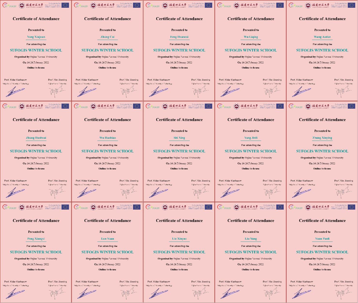 为了提高国际交流合作水平,2022年2月14-日26日(北京时间),贵州山地研究院罗光杰教授、贵州省流域地理国情监测重点实验室吴洋洋、樊瑞雪副教授等带领beat365平台唯一官网20余名同学参加了由福建师范大学承办的欧盟合作项目GIS And Remote Sensing For Sustainable Forestry And Ecology(SUFOGIS)冬季学校,限于疫情防控需要,本次冬季培训采用线上会议方式开展。参加此次会议的有中国、俄罗斯、欧盟等国内外专家学者与高校学生。本次活动得到欧盟ERAMUS+ SUFOGIS项目(598838-EPP-1-2018-EL-EPPKA2-CBHE-JP)的资助。