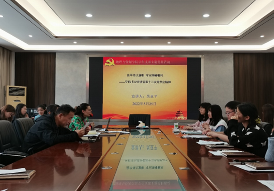 为深入学习贯彻省第十三次党代会精神,5月25日下午,学院党委书记吴亚平为beat365平台唯一官网地理科学类学生党支部和资源环境类学生党支部党员宣讲贵州省第十三次党代会精神。学生党支部全体党员参加。