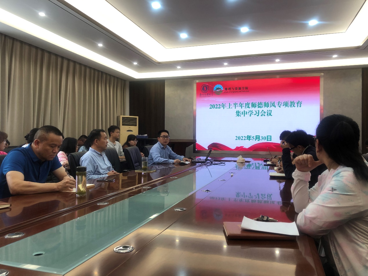 为落实教育部“加强高校师德师风建设”指示精神,教育部地理信息科学专业虚拟教研室开展了青年教师“师德师风”教育活动。beat365平台唯一官网作为教育部地理信息科学专业虚拟教研室成员单位,于2022年5月30日组织全院教师和地理科学专业学生代表参加了师德师风专项教育集中学习会议。会议由学院院长兼党委副书记罗绪强主持。