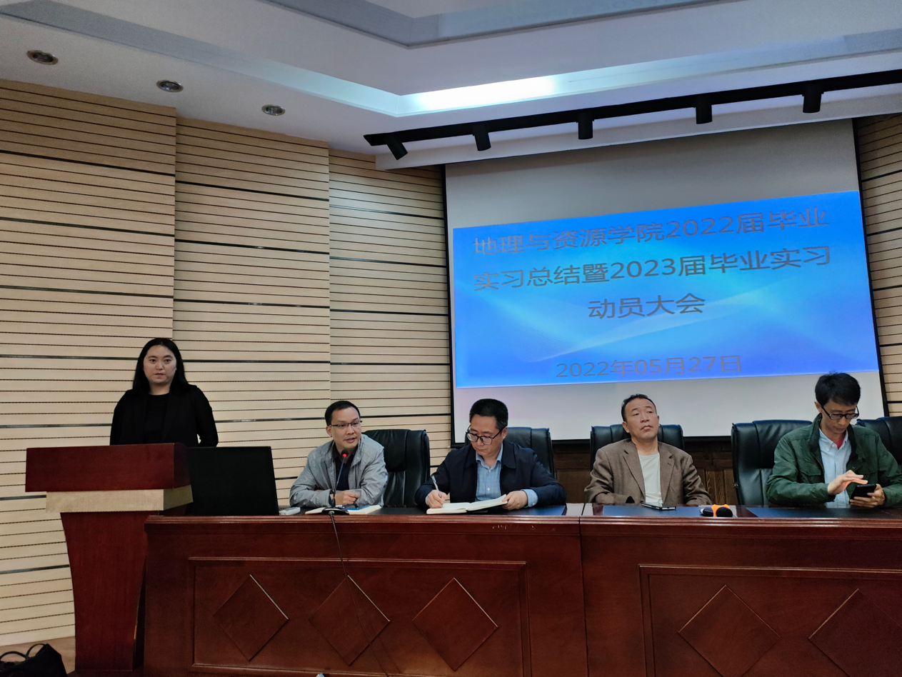 5月27日上午,beat365平台唯一官网在宁静楼一楼演播厅召开2022届学生毕业实习总结暨2023届学生毕业实习动员大会。学院党委书记吴亚平、院长罗绪强、副书记王万强、副院长邓家彬出席会议。学院各专业系主任及18、19级全体学生参加了会议,会议由学院实践教学负责人刘兴主持。
