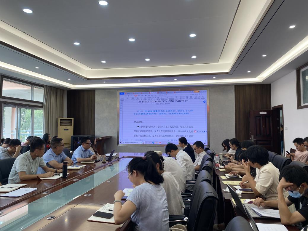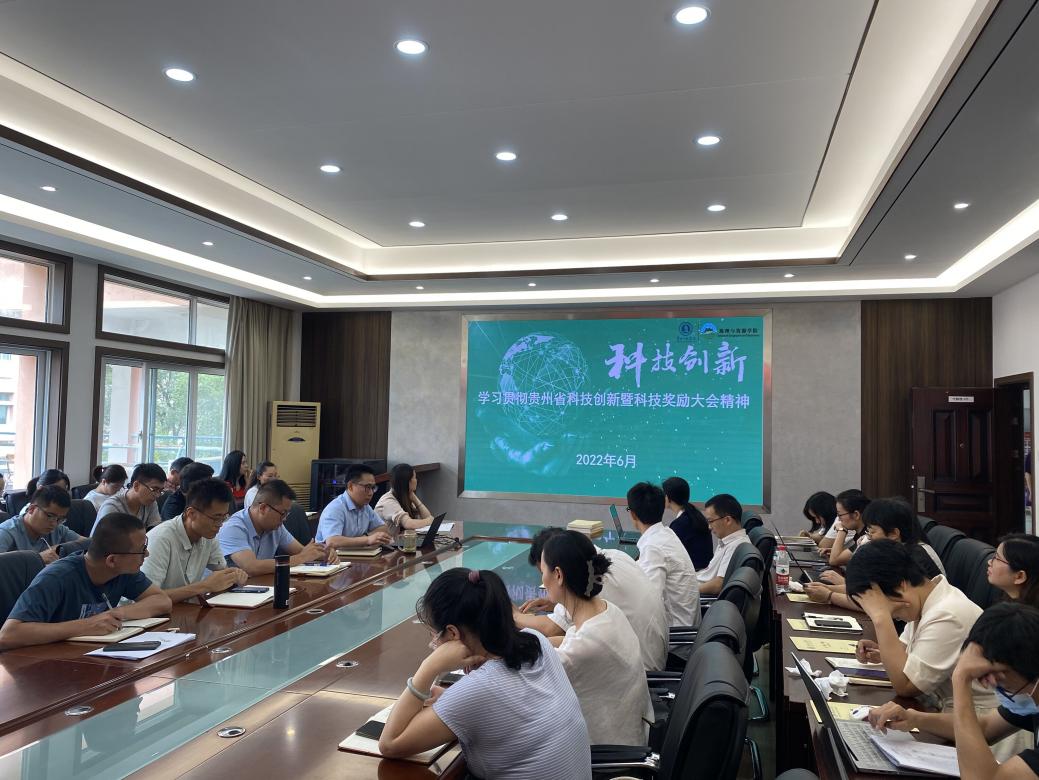 会上,罗绪强根据《省教育厅办公室关于学习贯彻贵州省科技创新暨科技奖励大会精神的通知》要求,传达学习了5月27日在贵阳召开的贵州省科技创新暨科技奖励大会精神。会议还学习了习近平总书记6月28日在湖北武汉考察时的重要指示精神以及科技部办公厅 贵州省人民政府办公厅联合印发的《“科技入黔”推动高质量发展行动方案》。罗绪强指出,在接下来的工作开展中,学院将坚持把发展科技第一生产力、培养人才第一资源、增强创新第一动力更好结合起来,围绕“四新”主攻“四化”,充分整合学科、人才队伍、平台等优势资源,突出重点,推动基础研究、应用研究及社会科学等领域研究的融通创新。全院教职工要积极响应,主动作为,在人才培养、科学研究、社会服务等方面做出新的更大的贡献。