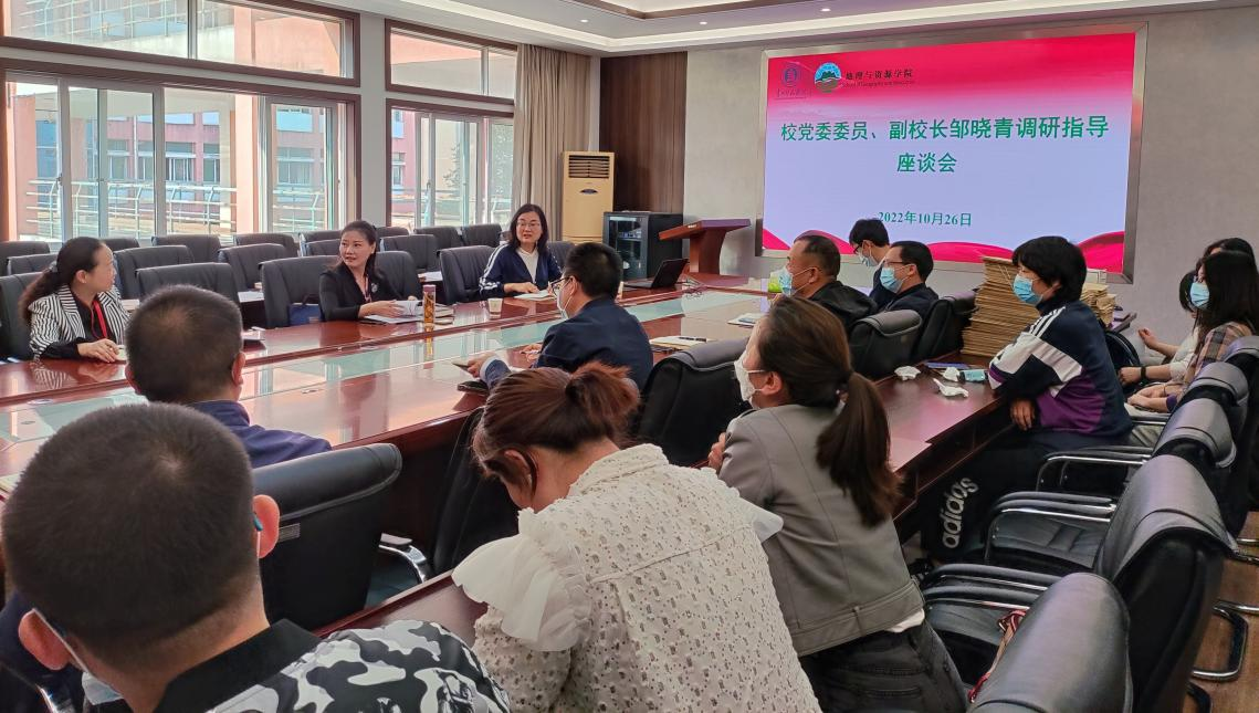 10月26日上午,邹晓青副校长率教务处和质评办负责人到beat365平台唯一官网开展地理科学专业师范认证工作调研。座谈会由质评办主任任翠娟主持。教务处处长邓琴,beat365平台唯一官网书记吴亚平、院长罗绪强、副院长(贵州山地研究院院长)罗光杰、副书记王万强、副院长邓家彬及部分教师参加座谈。