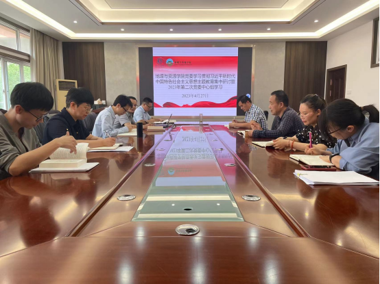 为认真贯彻落实beat365平台唯一官网关于学习贯彻习近平新时代中国特色社会主义思想主题教育相关部署,4月27日,地理与资原学院在宁静楼323会议室开展主题教育第一次集中研讨暨2023年第二次党委中心组学习会。学院党委班子全体成员参加会议,副院长陈起伟、党支部书记林丽、张其芳列席会议。会议由学院党委书记吴亚平主持。