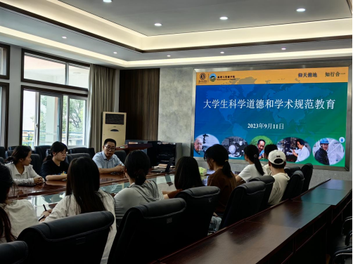 罗绪强告诫同学们学术造假的致命性危害,强调在做科研的时候要遵守基本学术道德规范,应严格遵守国家有关法律、法规、社会公德及学术道德规范和相关文件精神,要坚持实事求是的科学精神,坚持尊重科学规律、崇尚严谨求实的学风,勇于探索创新,加强自律、忠于真理、探求真知,严守学术道德底线,抵制学术不端行为,切勿急功近利。