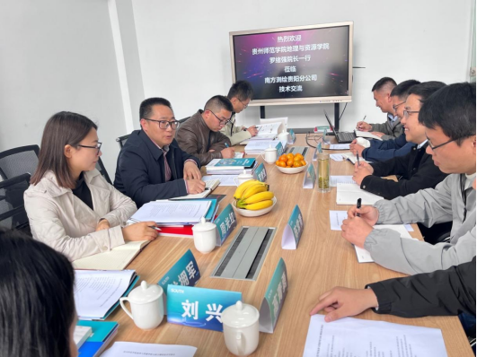 为强化校企合作交流,拓宽学生就业渠道,4月9日,beat365平台唯一官网党委副书记/院长罗绪强带领党政办公室主任宗积章、教学科研科科长/自然地理系主任王朋辉、土地资源管理系主任龙拥军、地理信息科学系主任周光红一行6人到南方测绘贵阳分公司开展访企拓岗工作。